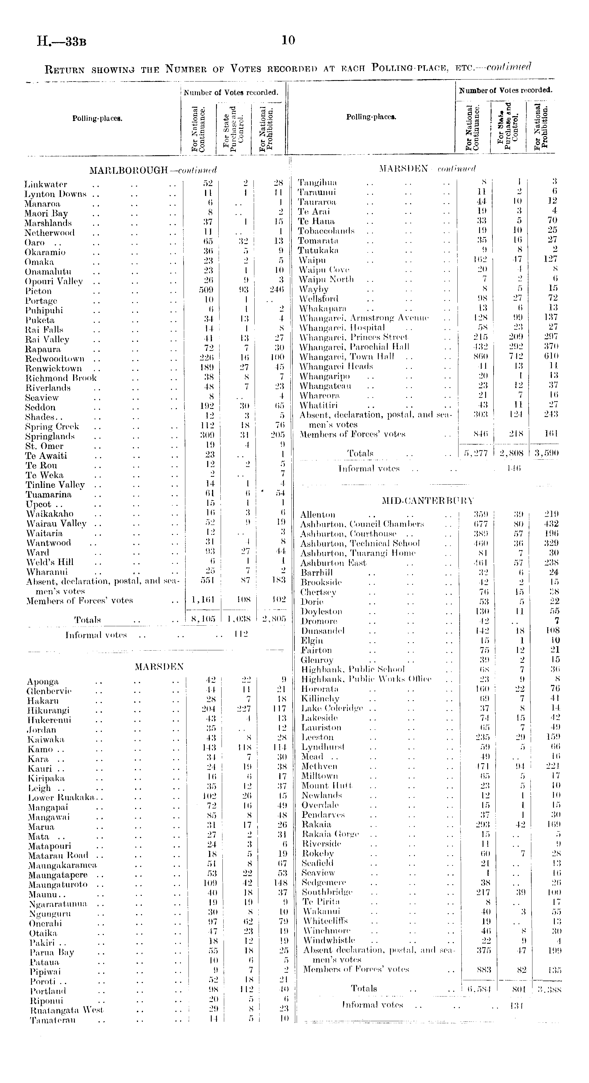 Number of Votes recorded. 13 g "c II d Polling-places. oca .S *-g o-2 '■S 2 Sio? '43 S So «ss 2 § && h <5 MARLBOROUGH —continued Linkwater .. .. .. 52 2 28 Lynton Downs .. .. .. i 1 1 11 Manaroa .. . ■ .. 6 .. 1 Maori Bay .. .. .. 8 Marshlands .. .. . • 37 1 15 Netlierwood .. .. .. 11 . . 1 Oaro .. .. .. • • 65 32 13 Okaramio .. .. . • 36 5 9 Omaka .. .. • • 23 2 5 Onamalutu .. .. .. 23 1 10 Opouri Valley .. .. . • 26 9 3 Picton .. .. • • 509 93 246 Portage .. . • •. 10 1 Puhipuhi .. .. .. 6 1 2 Puketa .. .. • • 34 13 4 Rai Falls .. .. .. 14 1 8 Rai Valley .. .. . . 41 13 27 Rapaura .. . • • • 72 7 30 Redwoodtown .. .. .. 226 16 100 Renwielctown .. .. .. 189 27 45 Richmond Brook . . . • 38 8 7 Riverlands .. . • .. 48 7 23 Seaview .. •. • • 8 .. 4 Seddon .. .. • • 192 30 65 Shades.. .. .. 12 3 5 Spring Creek .. .. •• 112 18 76 Springlands .. .. .. 309 31 205 St. Omer .. . . . . 19 4 9 Te Awaiti .. . . • • 23 .. 1 TeRou .. ■■ 12 2 5 Te Weka .. .. .. 2 . . 7 Tinline Valley .. .. .. 14 1 4 Tuamarina .. .. .. 61 6 ' 54 Upcot .. .. ■ • ■ • 15 1 1 Waikakaho .. .. .. 16 3 6 Wairau Valley .. .. .. 52 9 19 Waitaria .. • • • • 12 .. 3 Wantwood .. .. ■ • 31 4 8 Ward . . . • • • 93 27 44 Weld's Hill .. .. • • 6 1 l Wharanui .. .. . • 25 7 2 Absent, declaration, postal, and sea- 551 87 183 men's votes Members of Forces'votes .. 1,161 108 102 Totals • ■ 8,105 1,038 2,805 Informal votes .. .. ..112 MARS DEN Aponga .. .. •• 42 j 22 9 Glenbervie .. .. • • 44 II 21 Hakarn .. • • • ■ 28 7 18 Hikurangi 204 227 117 Hukerenui .. ■■ 43 4 13 Jordan .. •• •• 35 .. 12 Kaiwaka .. .. • • 43 8 28 Kamo .. .. .. •• 143 118 114 Kara .. . • • • • • 34 7 30 Kauri 24 19 38 Kiripaka .. . • • ■ 16 6 17 Leigh 35 12 37 Lower Ruakaka.. .. •• 102 26 45 Mangapai .. • • 72 16 49 Mangawai .. • • • • 85 8 48 Mama 31 17 26 Mata .. .. •• •• 27 2 31 Matapouri .. .. • • 24 3 6 Matarau Road .. . • .. 18 5 19 Maungakaramea .. • • 51 8 67 Maungatapere .. . . . • 53 22 53 Maungaturoto .. .. .. 109 42 148 Maunu.. •• •• 40 18 37 Ngararatunua .. .. . • 19 19 9 Ngunguru .. • • •• 30 8 10 Onerahi 97 62 79 Otaika 47 23 19 Pakiri .. .. • ■ • • 18 12 19 Parua Bay .. .... 55 18 25 Pataua . • • ■ • • 16 6 5 Pipiwai .. • ■ • • 9 7 Poroti .. • • • • • • 52 18 21 Portland .. •< •• 112 40 Riponui • • •• • • 20 5 6 Ruatangata West .. .. 29 8 23 Tamaterau .. . • •. 14 5 10
