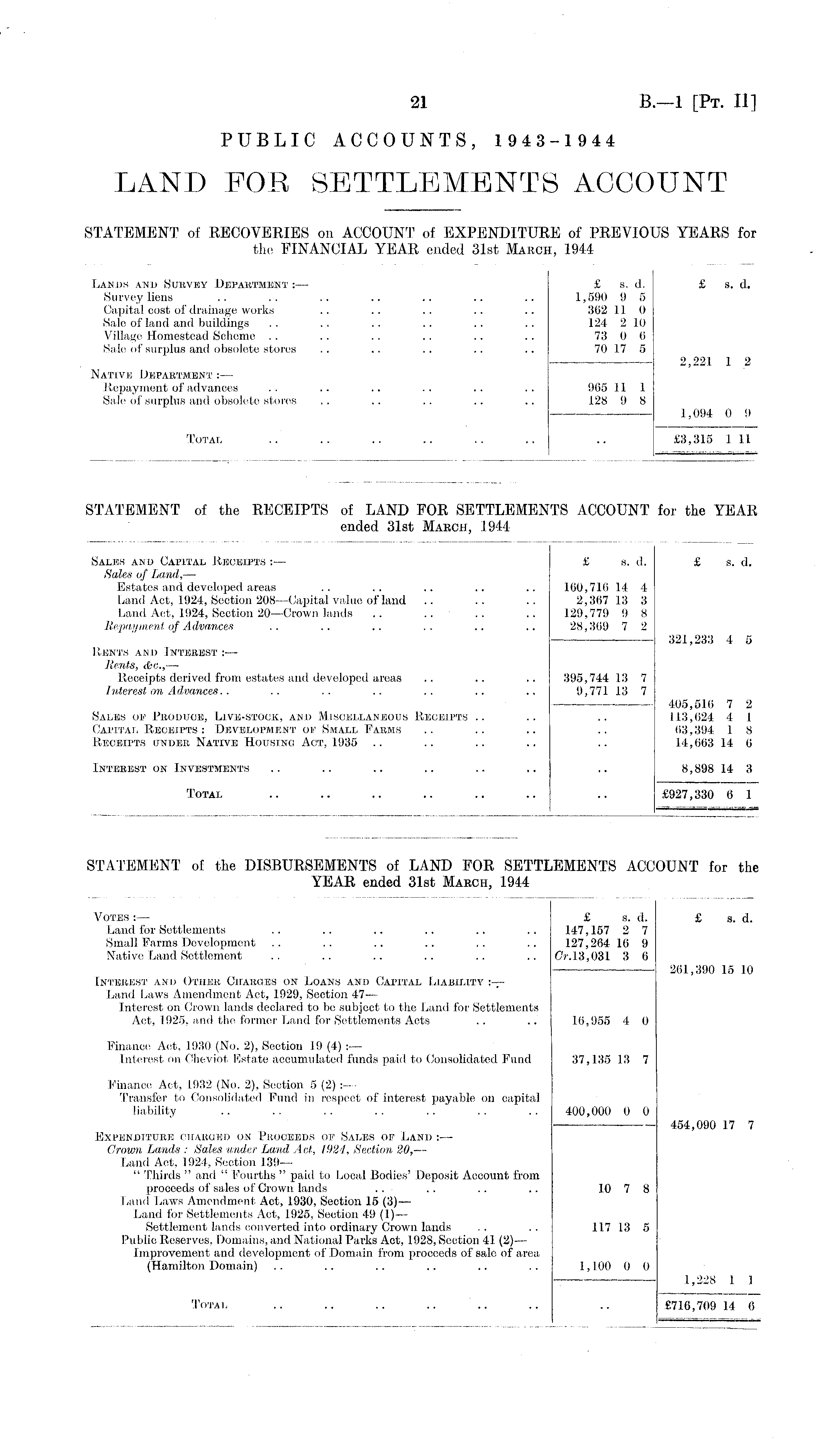 PUBLIC ACCOUNTS, 1943-1944 LAND FOB SETTLEMENTS ACCOUNT