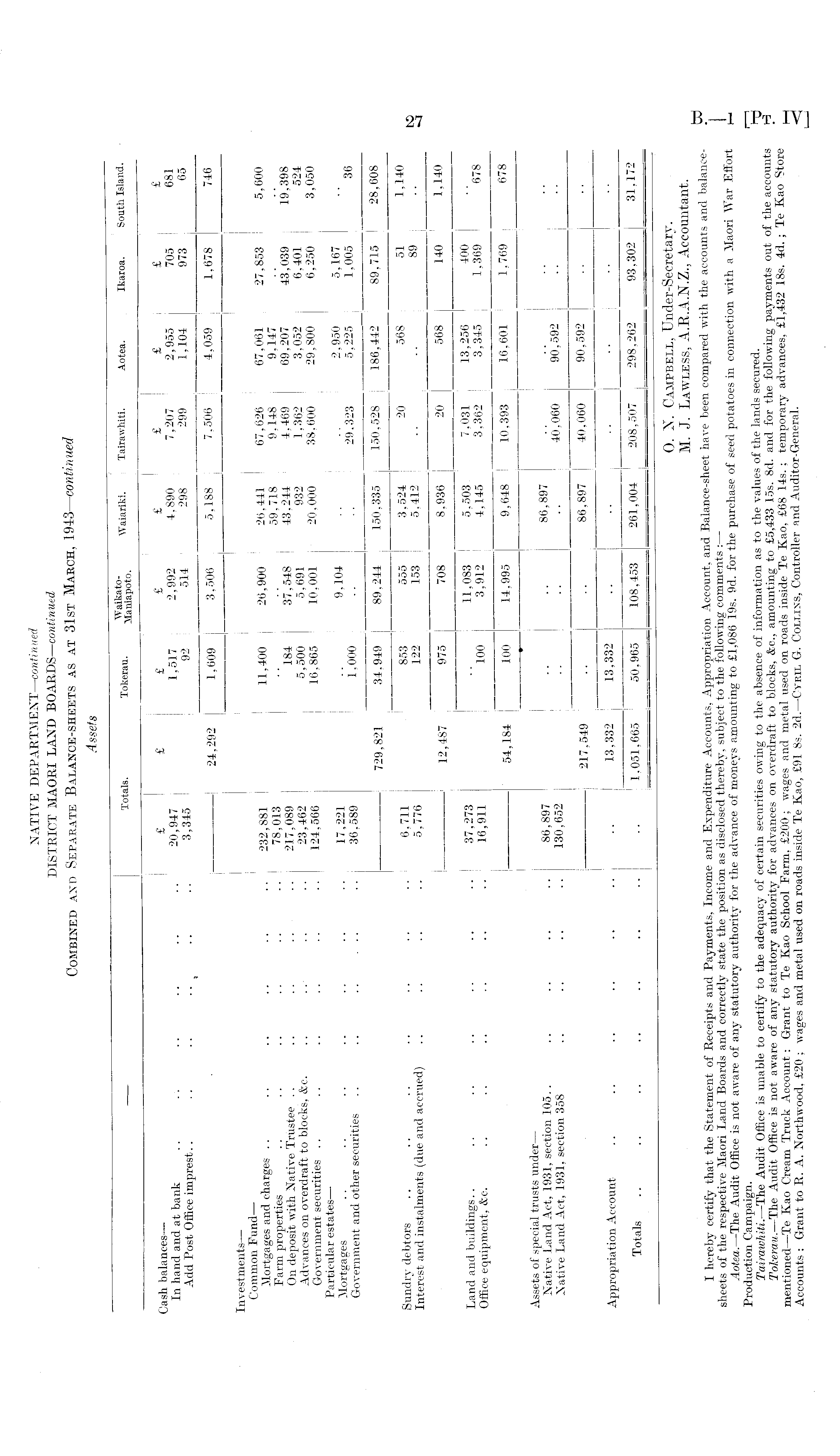 NATIVE DEPARTMENT— continued DISTRICT MAORI LAND BOARDS— continued Combined and Separate Balance-sheets as at 31st March, 1943— continued Assets