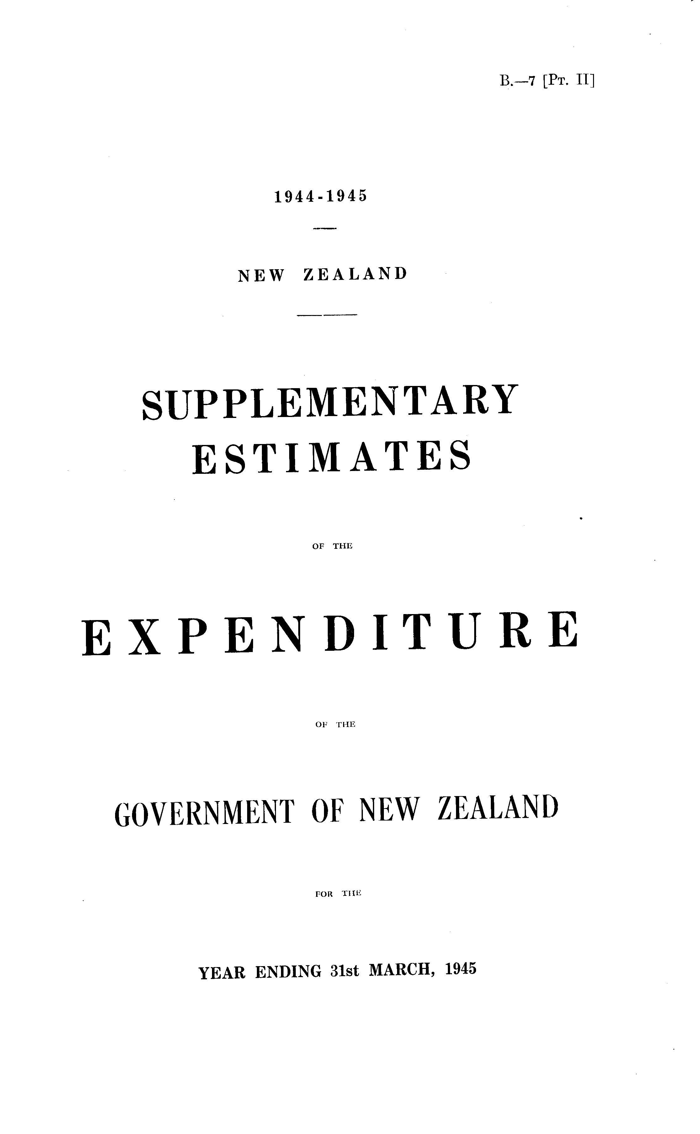 SUPPLEMENTARY ESTIMATES OF THE EXPENDITURE OF THE GOVERNMENT OF NEW ZEALAND FOR THE YEAR ENDING 31st MARCH, 1945