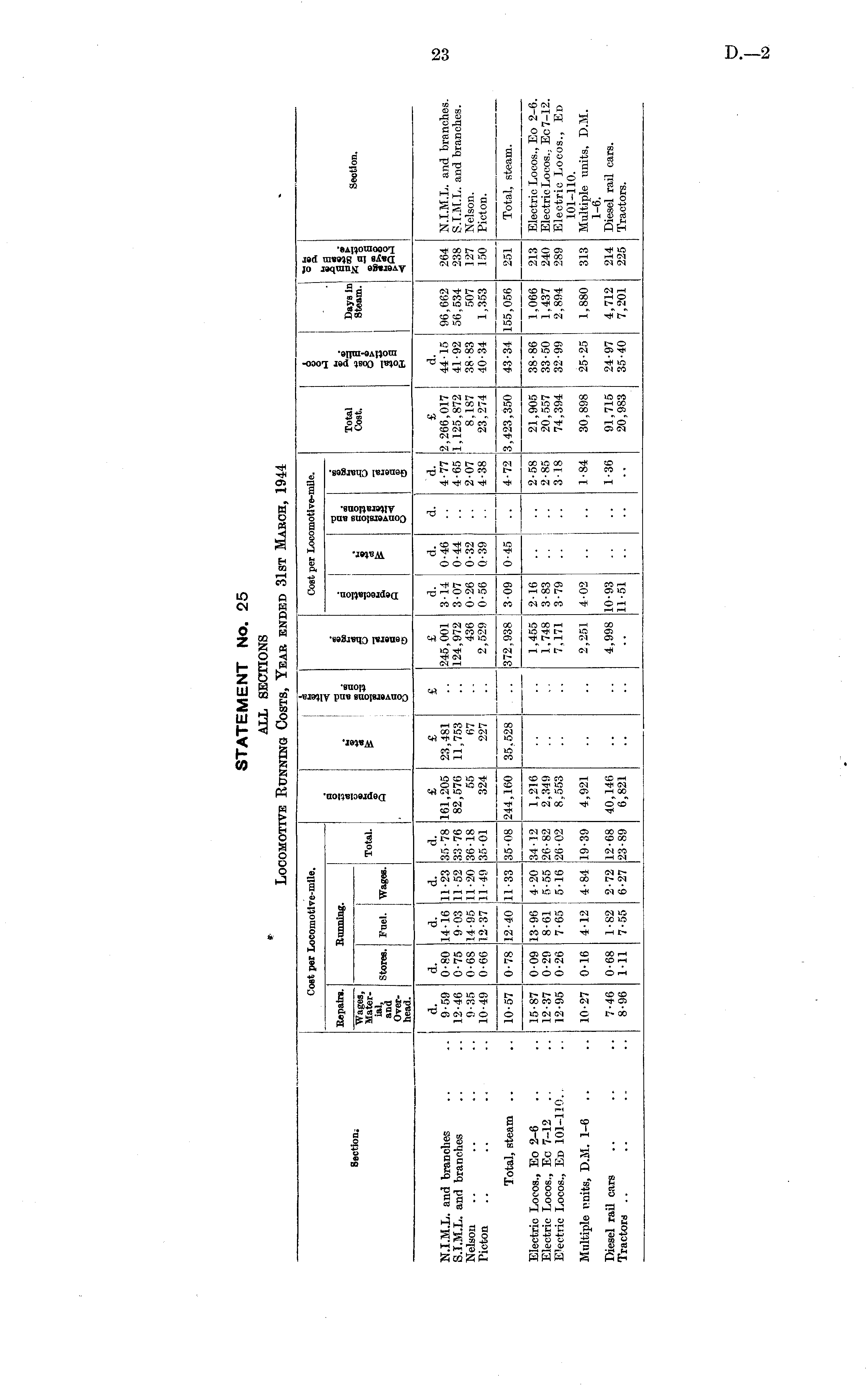 STATEMENT No. 25 ALL SECTIONS Locomotive Running Costs, Year ended 31st March, 1944