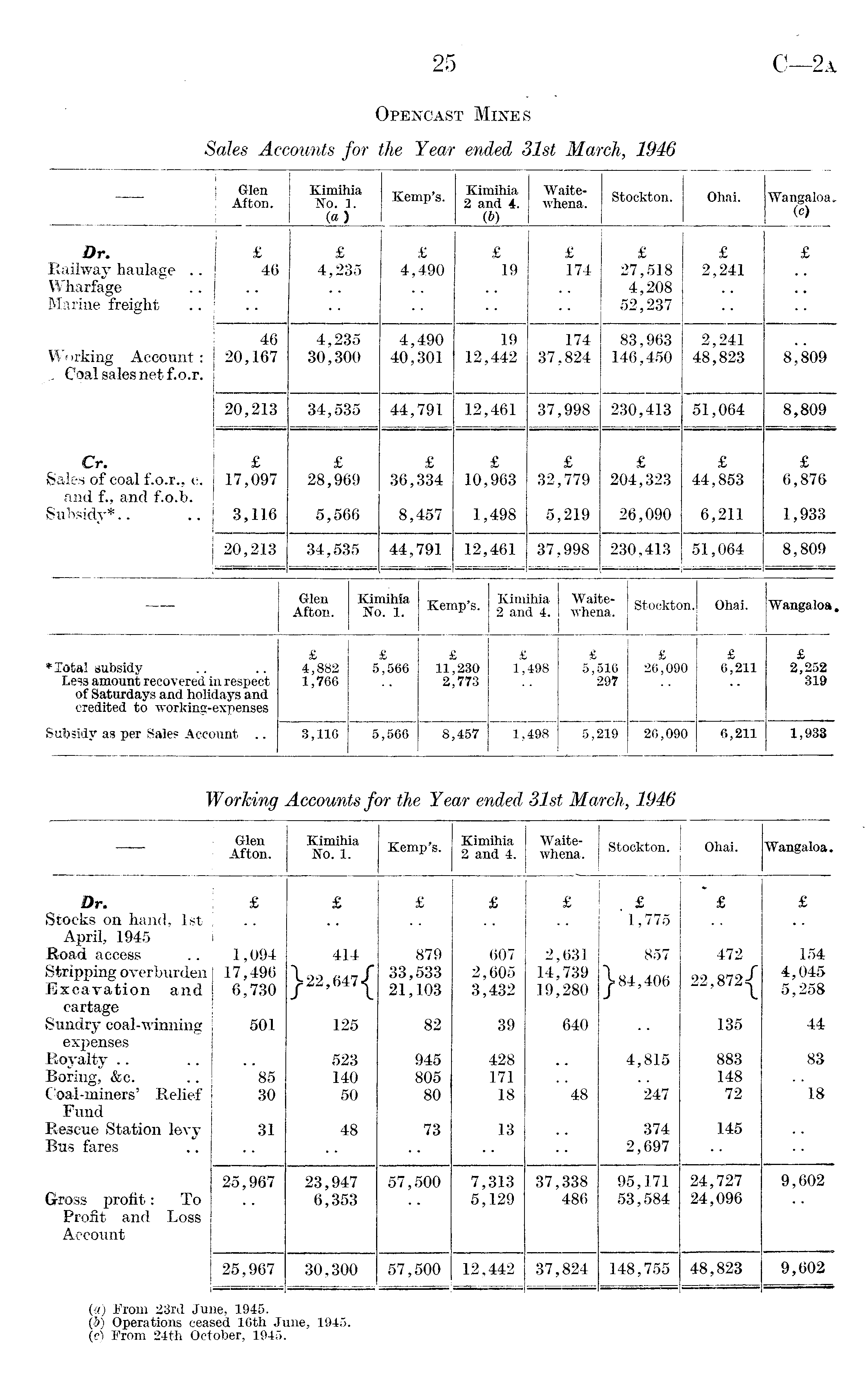 Opencast Mines Sales Accounts for the Year ended 31st March, 1946