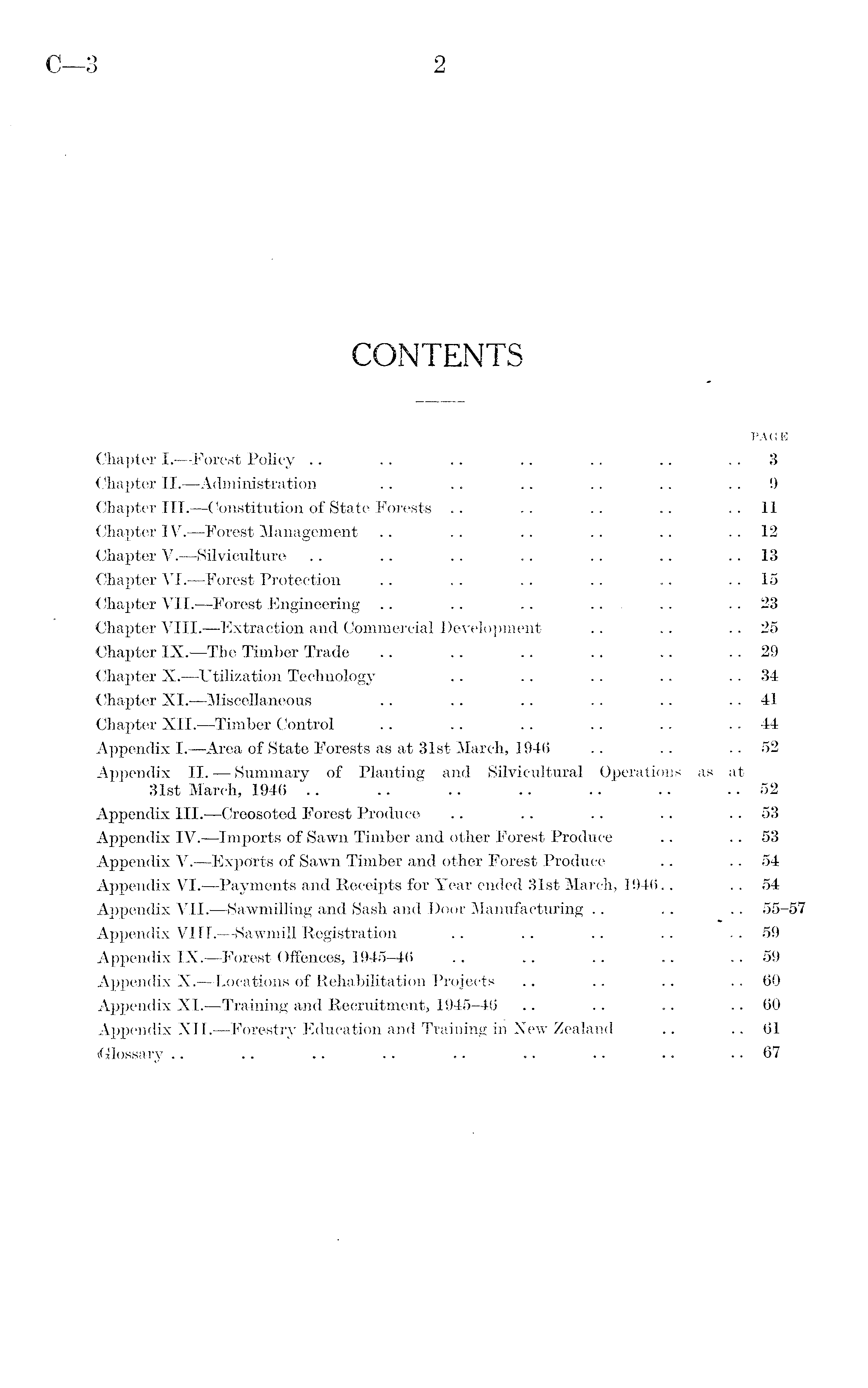 PAGE Chapter I.—Forest Policy .. .. .. .. .. .. 3 Chapter IX. —Administration .. .. .... .. 9 Chapter lll.—Constitution of State Forests .. .. .. .. ..11 Chapter IV. —Forest Management .. .. .. .. .. .. 12 Chapter V. —Silviculture .. .. .. .. .. .. 13 Chapter VI. —Forest Protection .. .. .. .. .. .. 15 Chapter VII. —Forest Engineering .. .. .. ... .. 23 Chapter VIII. —Extraction and Commercial Development .. .. .. 25 Chapter IX. —The Timber Trade .. .. .. .. .. .. 29 Chapter X.—Utilization Technology .. .. .. .. 34 Chapter XI. —Miscellaneous .. .. .. .. .. 41 Chapter XII. —Timber Control .. .. .. .. .. .. 44 Appendix I. —Area of State Forests as at 31st March, 1946 .. .. .. 52 Appendix 11. Summary of Planting and Silvicultural Operations as at 31st March, 1946 .. .. .. .. .. .. .. 52 Appendix 111. —Creosoted Forest Produce .. .. .. .. .. 53 Appendix IV. —Imports of Sawn Timber and other Forest Produce .. .. 53 Appendix V. —Exports of Sawn Timber and other Forest Produce .. .. 54 Appendix VI. —Payments and Receipts for Year ended 31st March, 1946.. 54 Appendix VII. —Sawmilling and Sash and Door Manufacturing .. .. .. 55-57 Appendix Vlll.—Sawmill Registration .. .. .. .. .. 59 Appendix IX.—Forest Offences, 1945-46 .. .. .. .. .. 59 Appendix X. —Locations of Rehabilitation Projects .. .. .. 60 Appendix Xl.—Training and Recruitment, 1945-46 .. .. .. .. 60 Appendix Xll.—Forestry Education and Training in New Zealand .. 61 Glossary .. .. .. .. .. .. .. .. .. 67