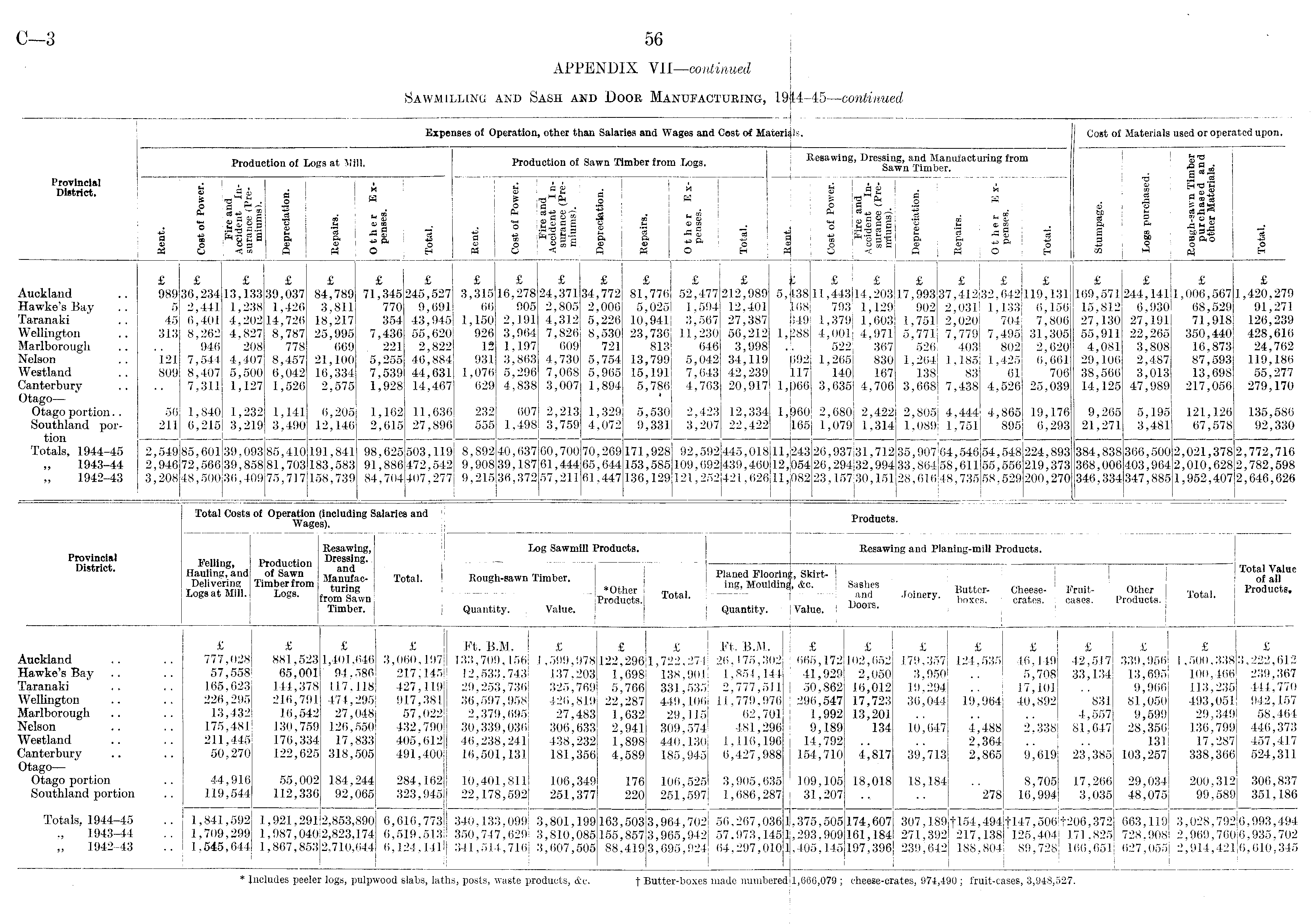 APPENDIX VII—continued Sawmilling and Sash and Door Manufacturing, 1944-45—continued