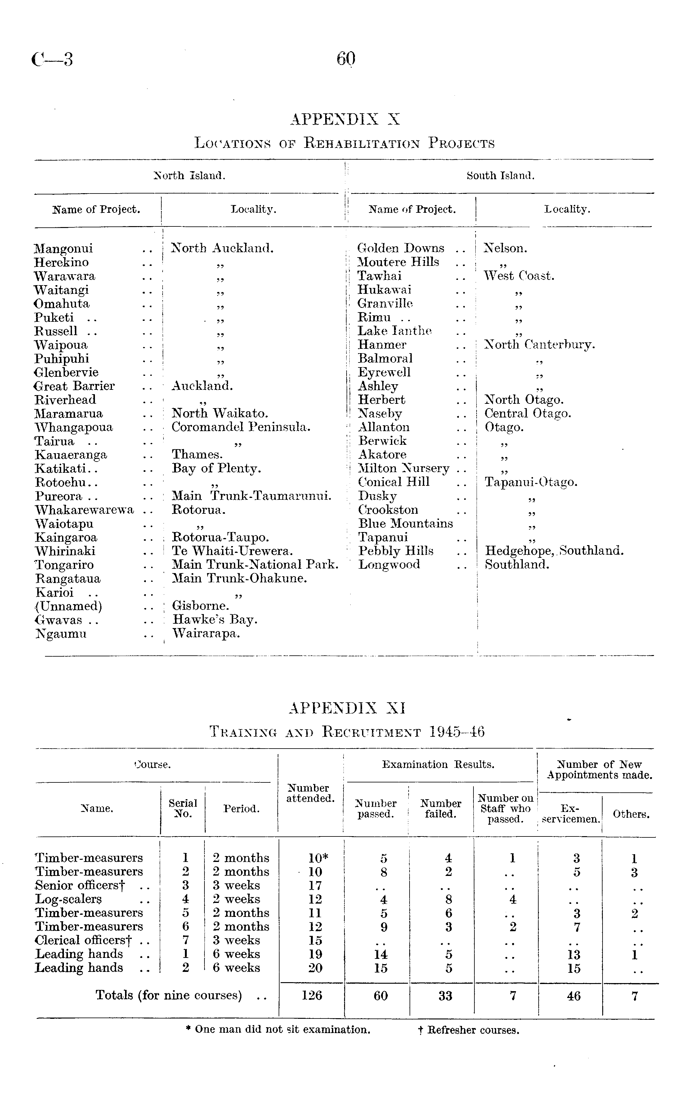 Course. Examination Results. Number of New Appointments made. Number Name. Serial No. Period. attended. Number j passed. Number failed. Number on Staff who passed. Exservicemen. Others. Timber-measurers Timber-measurers Senior officers! .. Log-sealers Timber-measurers Timber-measurers Clerical officers - ]- .. Leading hands Leading hands 1 2 3 4 5 6 7 1 2 2 months 2 months 3 weeks 2 weeks 2 months 2 months 3 weeks 6 weeks 6 weeks 10* 10 17 12 11 12 15 19 20 5 8 4 5 9 li 15 4 2 8 6 3 5 5 1 4 2 3 5 3 7 i3 15 1 3 2 i Totals (for nine courses) .. 126 60 33 7 46 7 * One man did not sit examination. + Refresher courses.