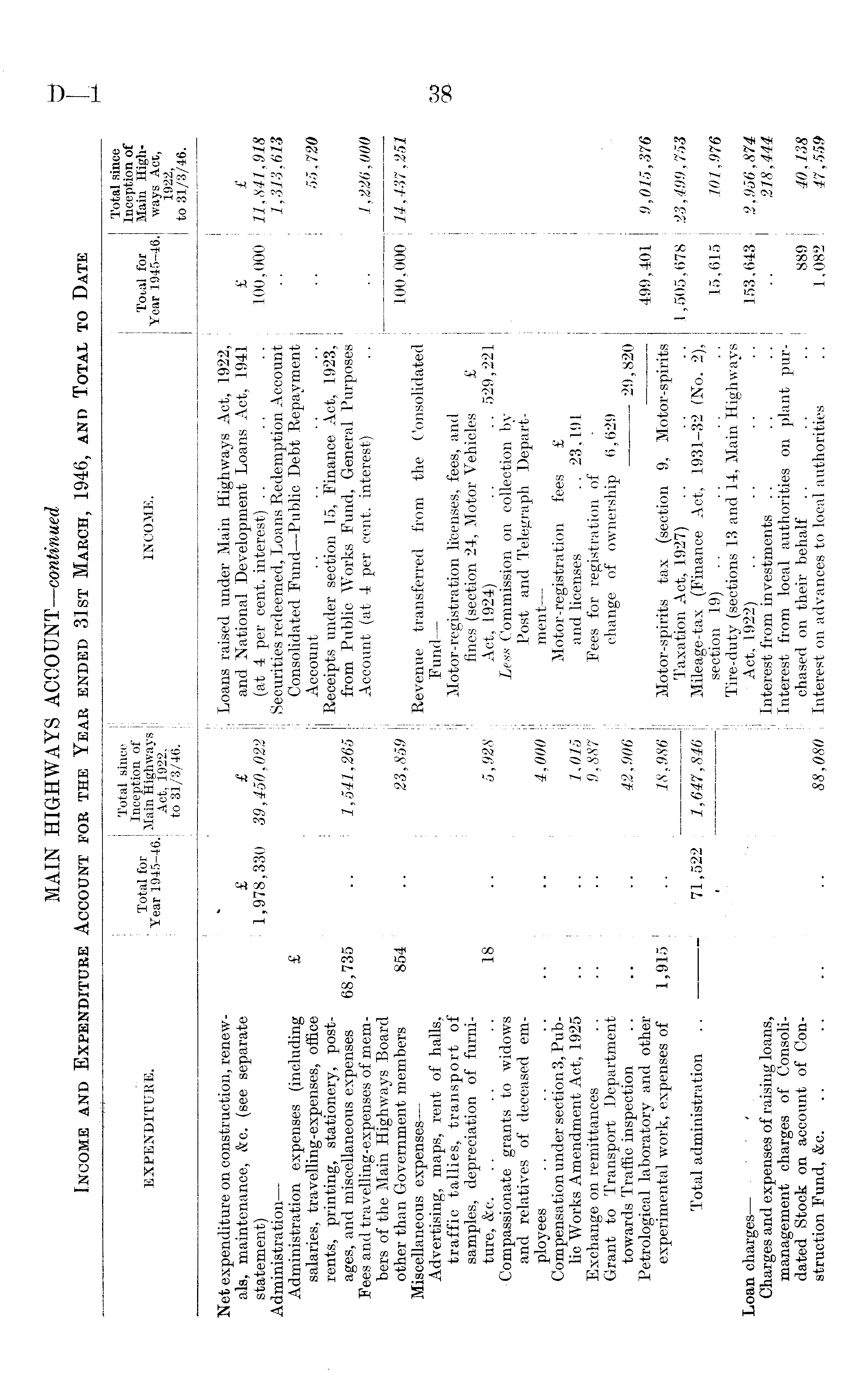 MAIN HIGHWAYS ACCOUNT— continued Income and Expenditure Account for the Year ended 31st March, 1946, and Total to Date