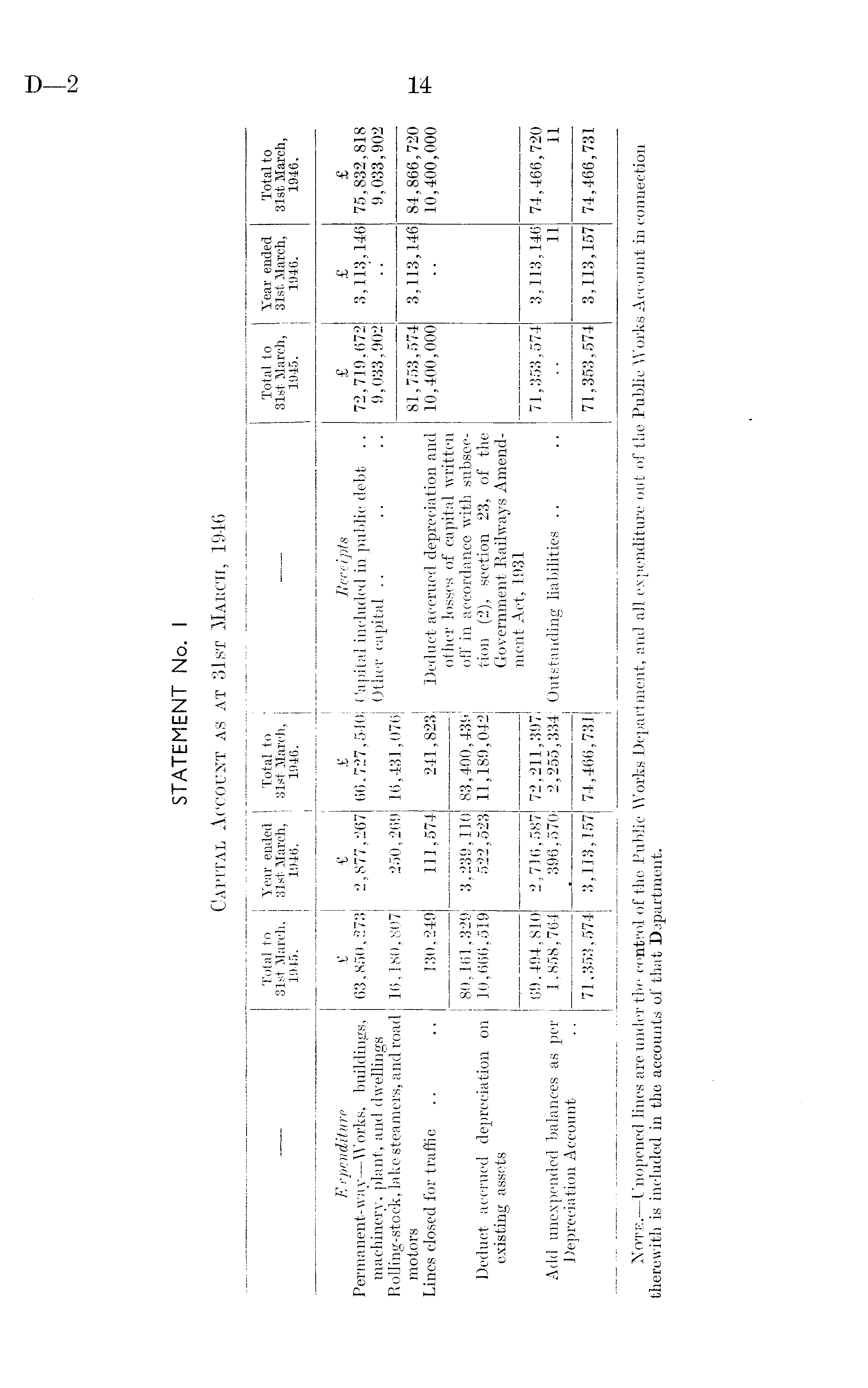 STATEMENT No. 1 Capital Account as at 31st March, 1946