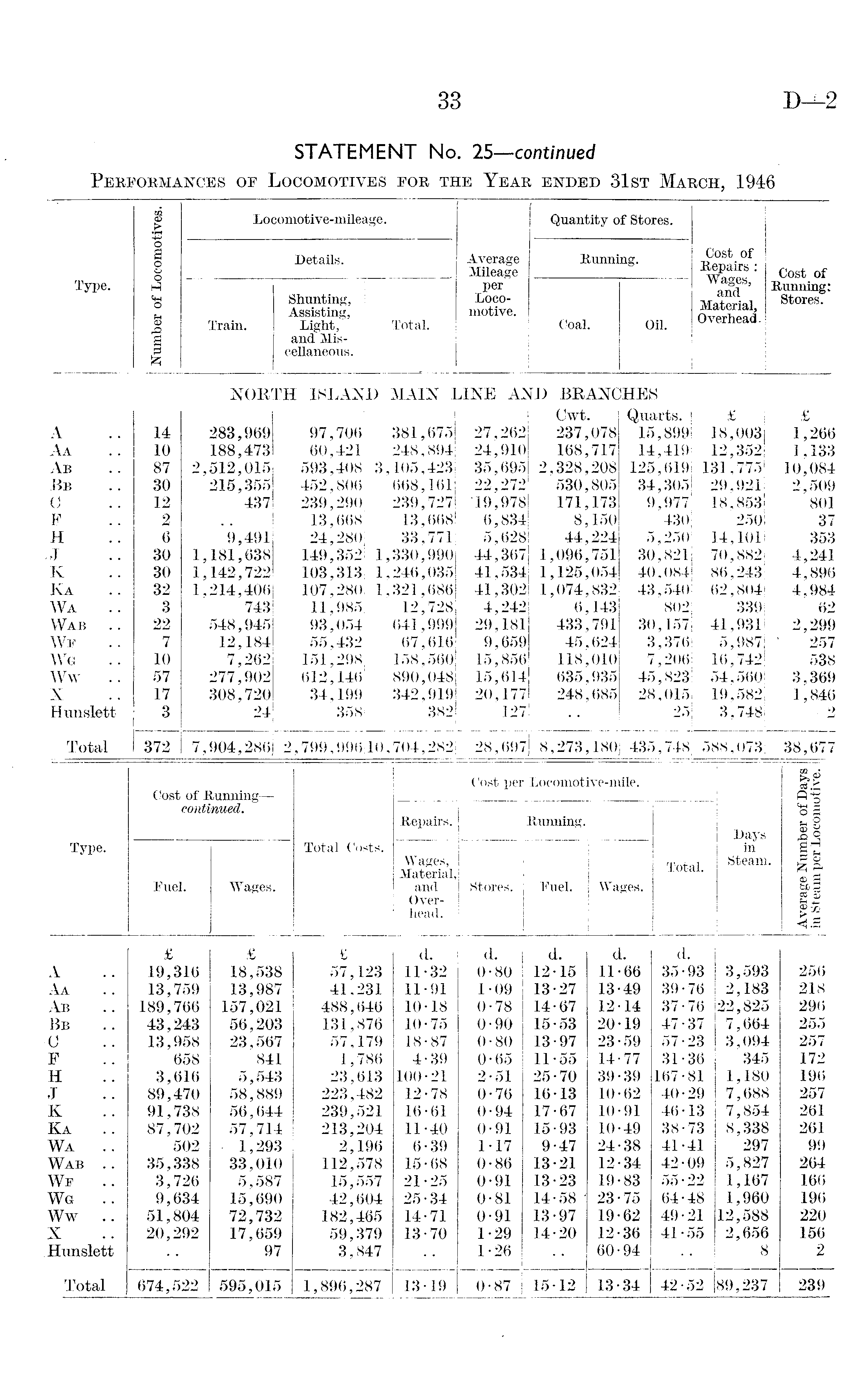 STATEMENT No. 25—continued Performances of Locomotives for the Year ended 31st March, 1946