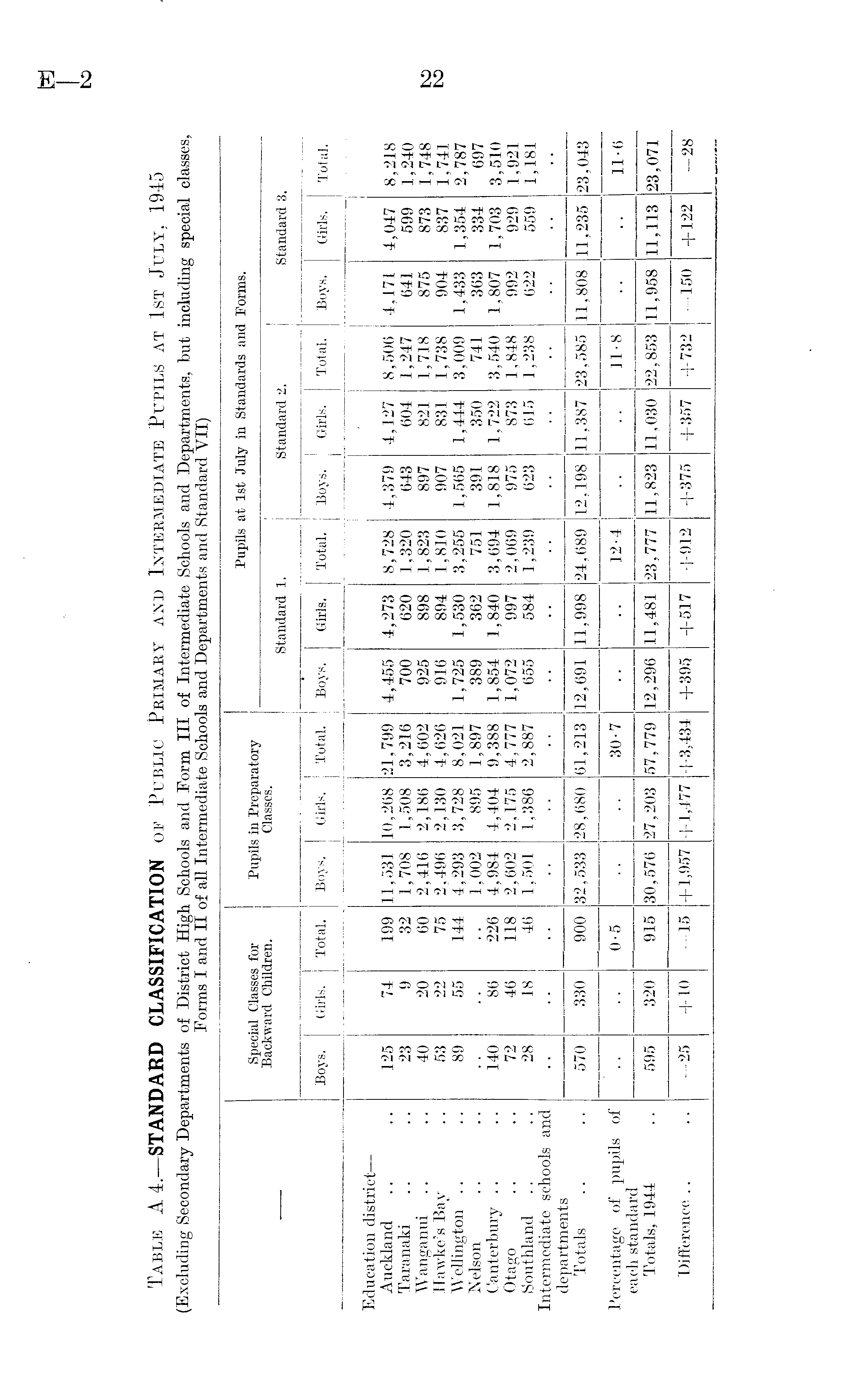 Table A4.—STANDARD CLASSIFICATION of Public Primary and Intermediate Pupils at 1st July, 1945