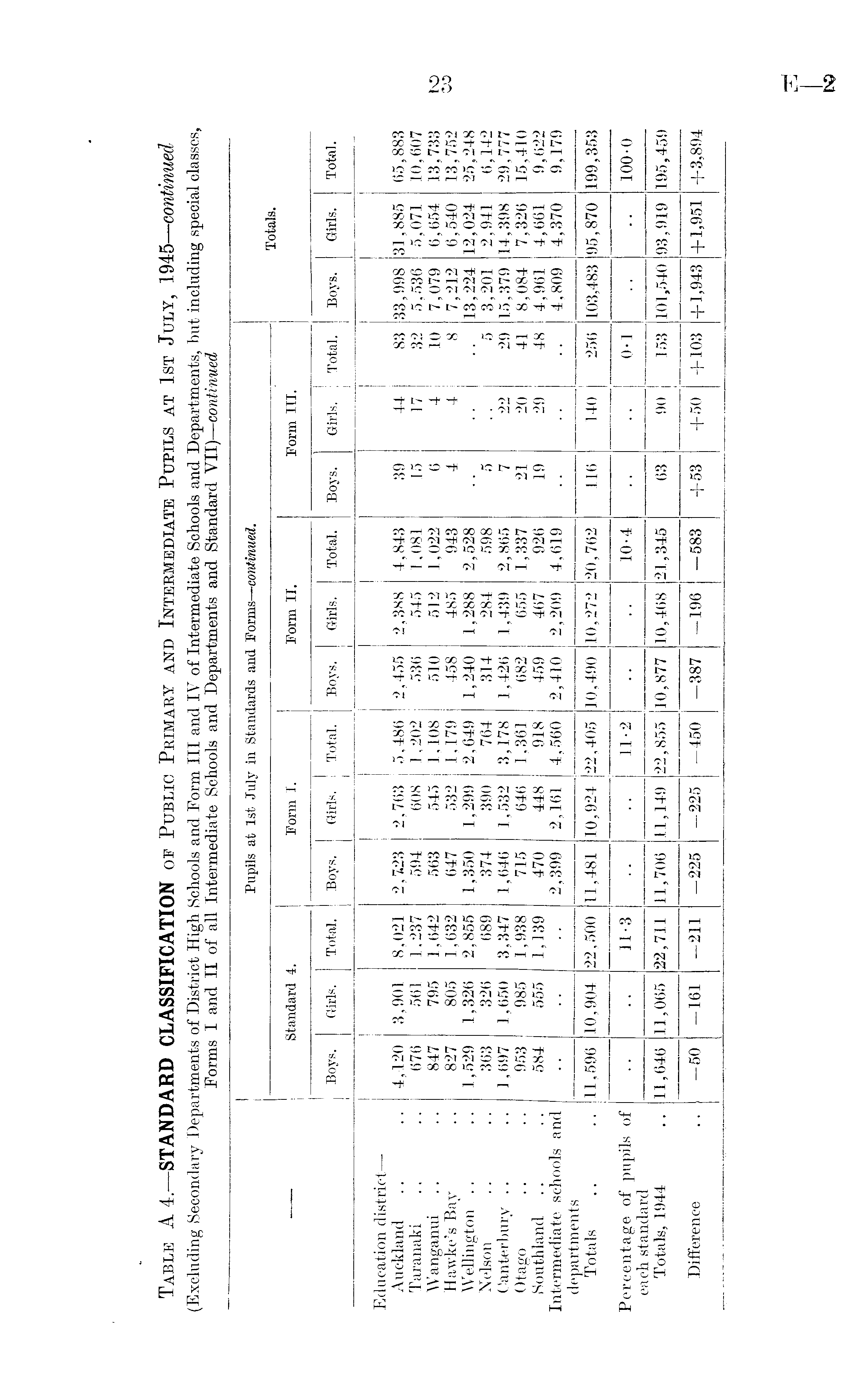 Table A 4.—STANDARD CLASSIFICATION of Public Primary and Intermediate Pupils at 1st July, 1945—continued