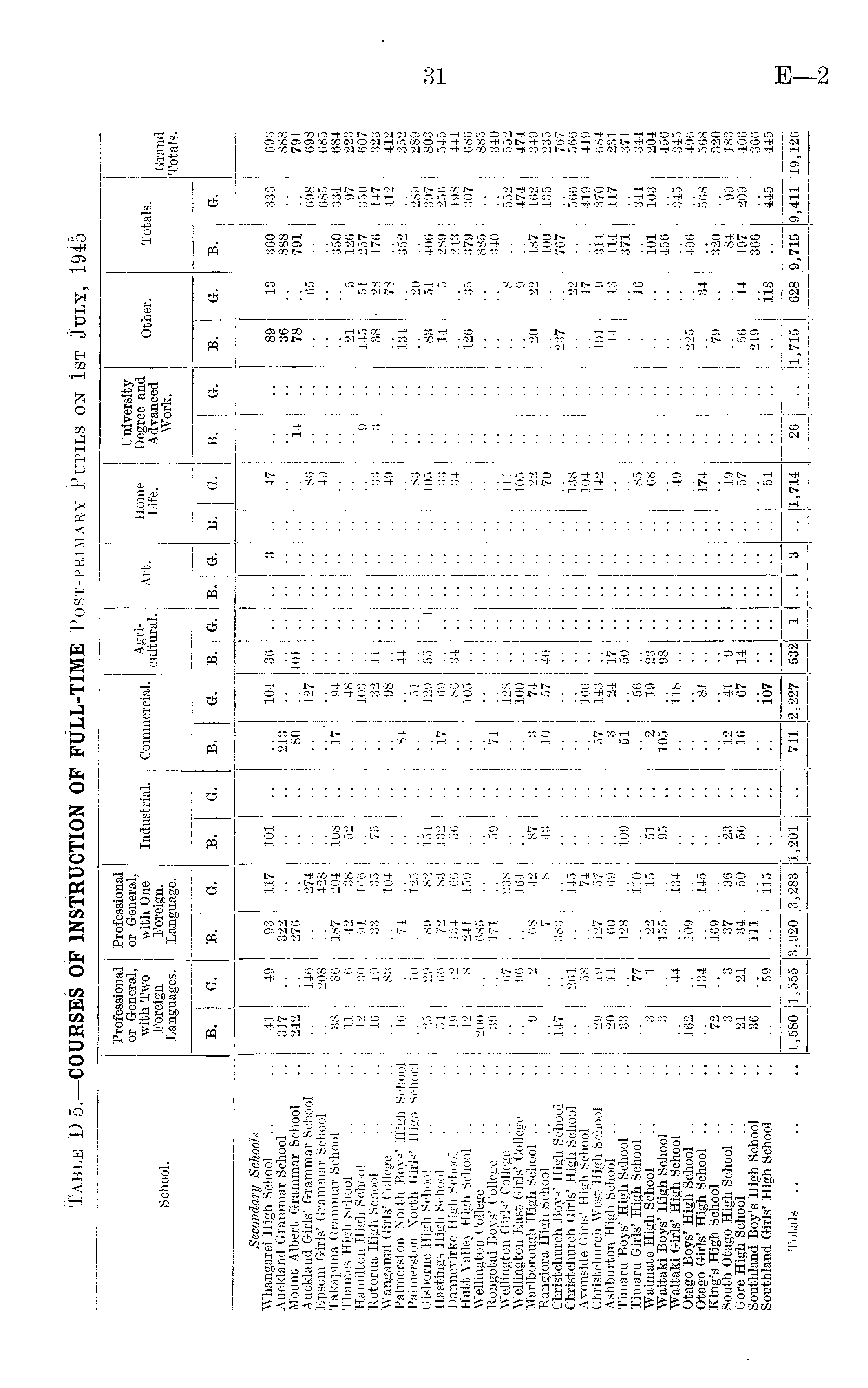 Table D5.—COURSES OF INSTRUCTION OF FULL-TIME Post-primary Pupils on 1st July, 1945