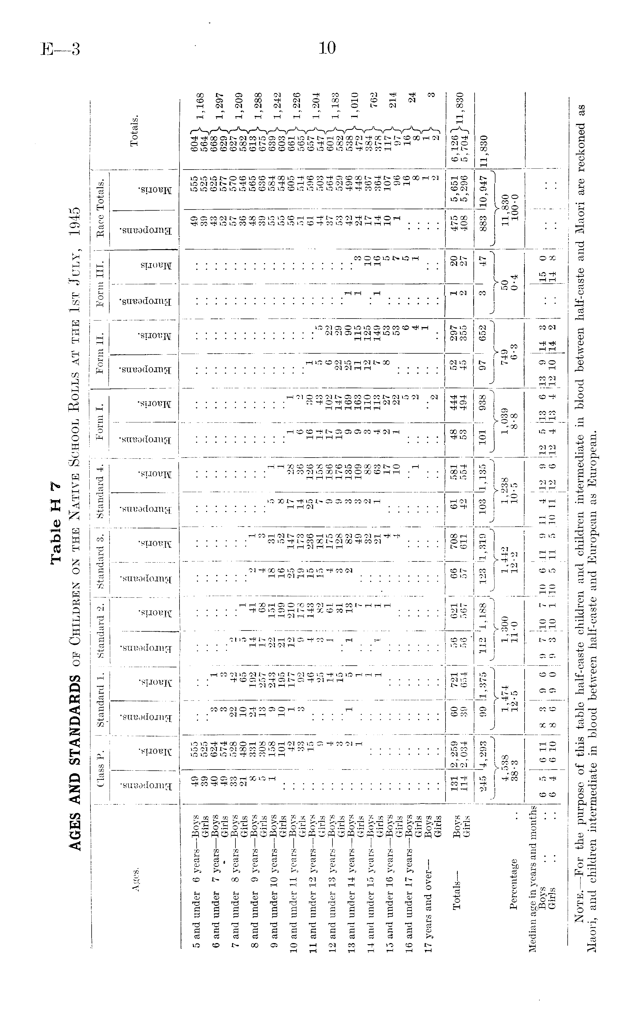 Table H 7 AGES AND STANDARDS of Children on the Native School Rolls at the 1st July, 1945