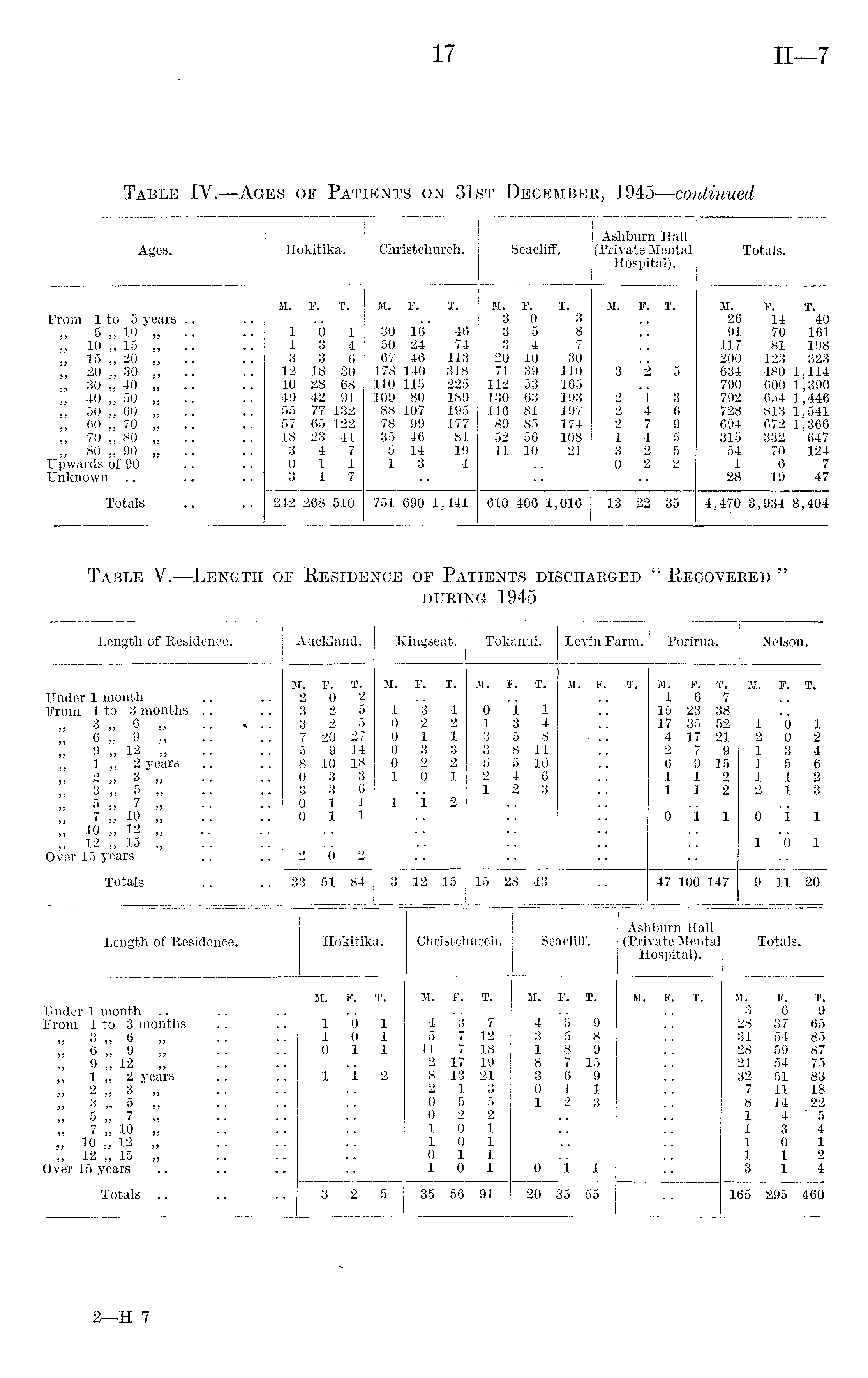 Table IV. —Ages of Patients on 31st December, 1945 —continued