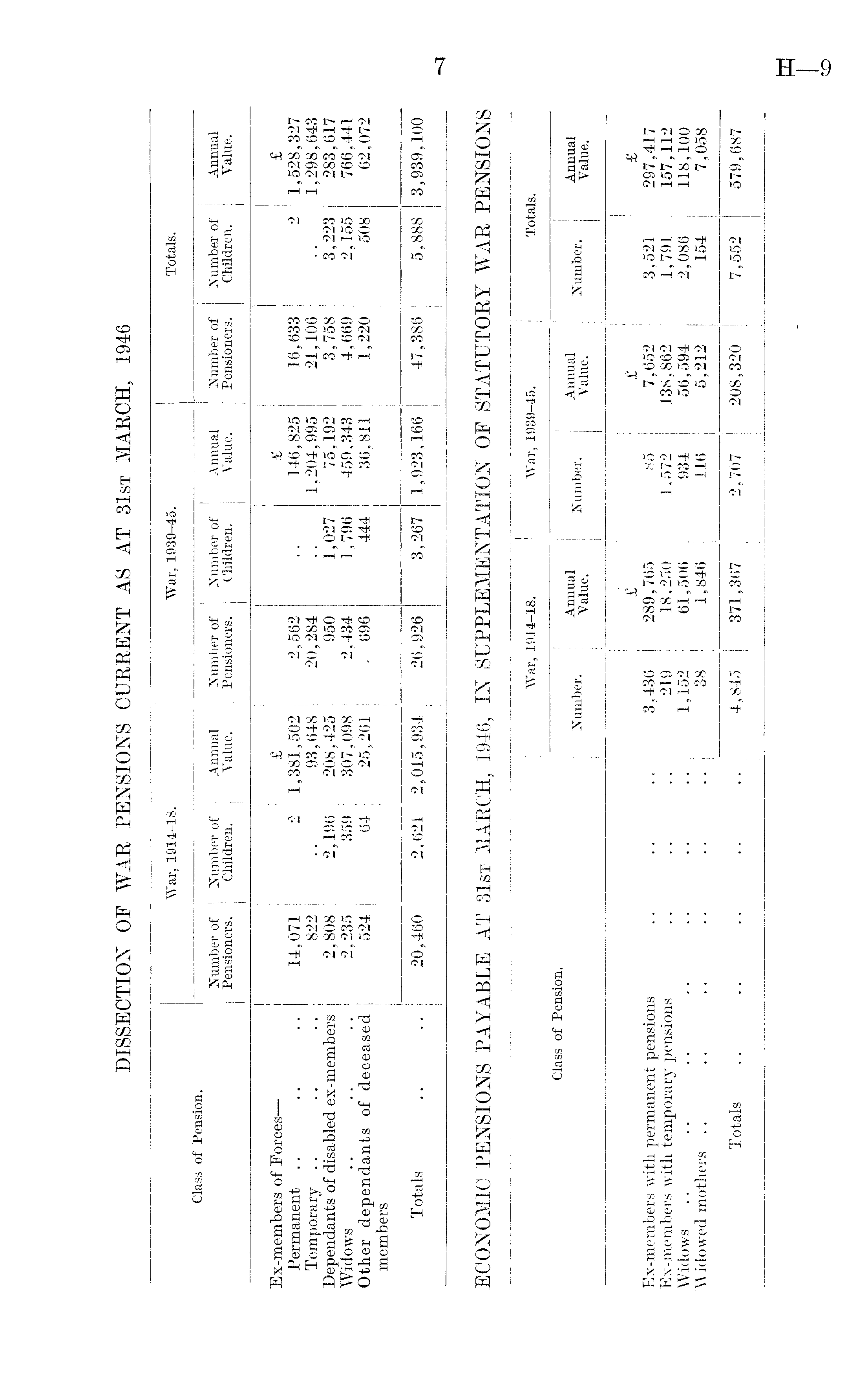 DISSECTION OF WAR PENSIONS CURRENT AS AT 31st MARCH, 1946