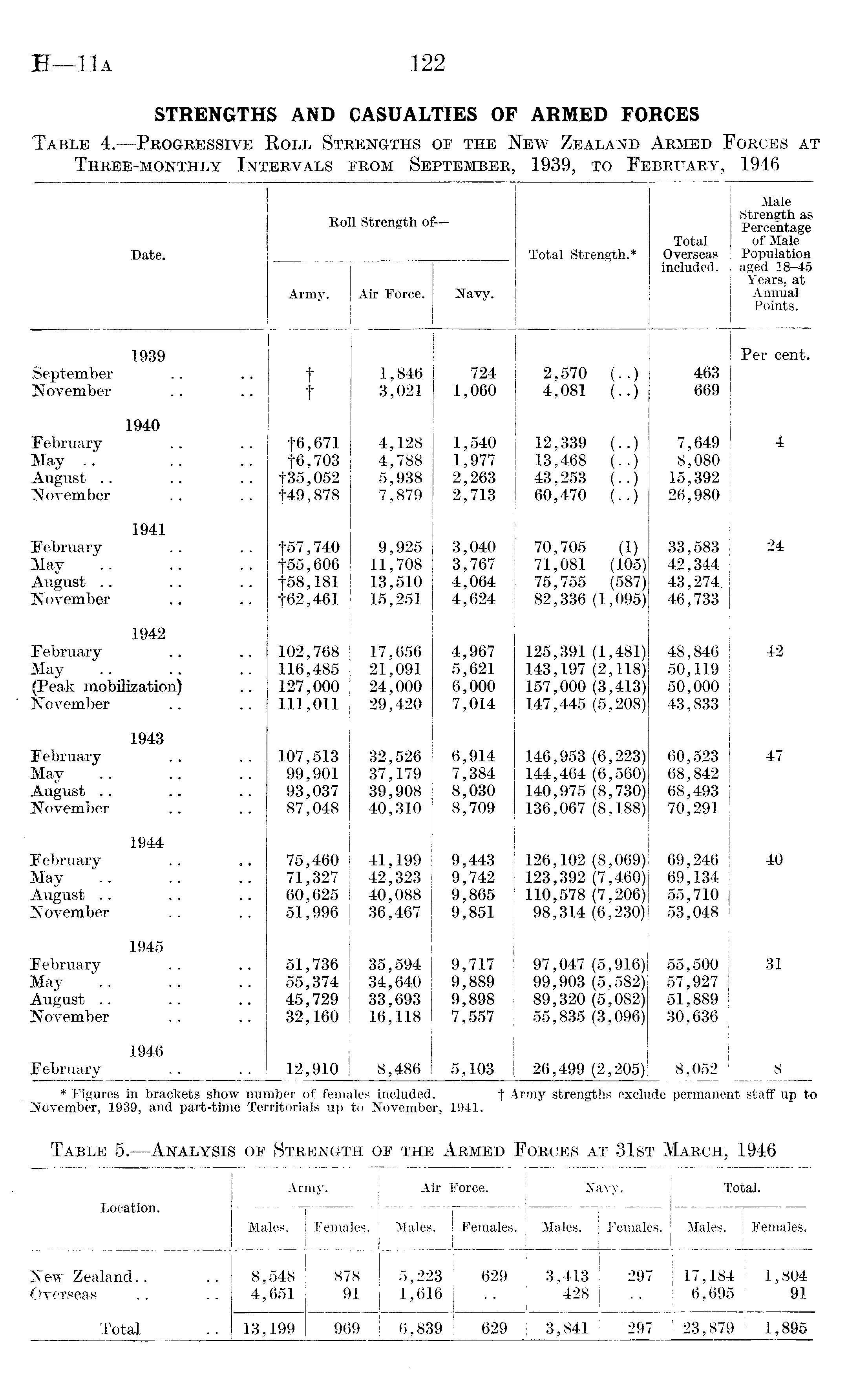 Table 5.—Analysis of Strength of the Armed Forces at 31st March, 1946