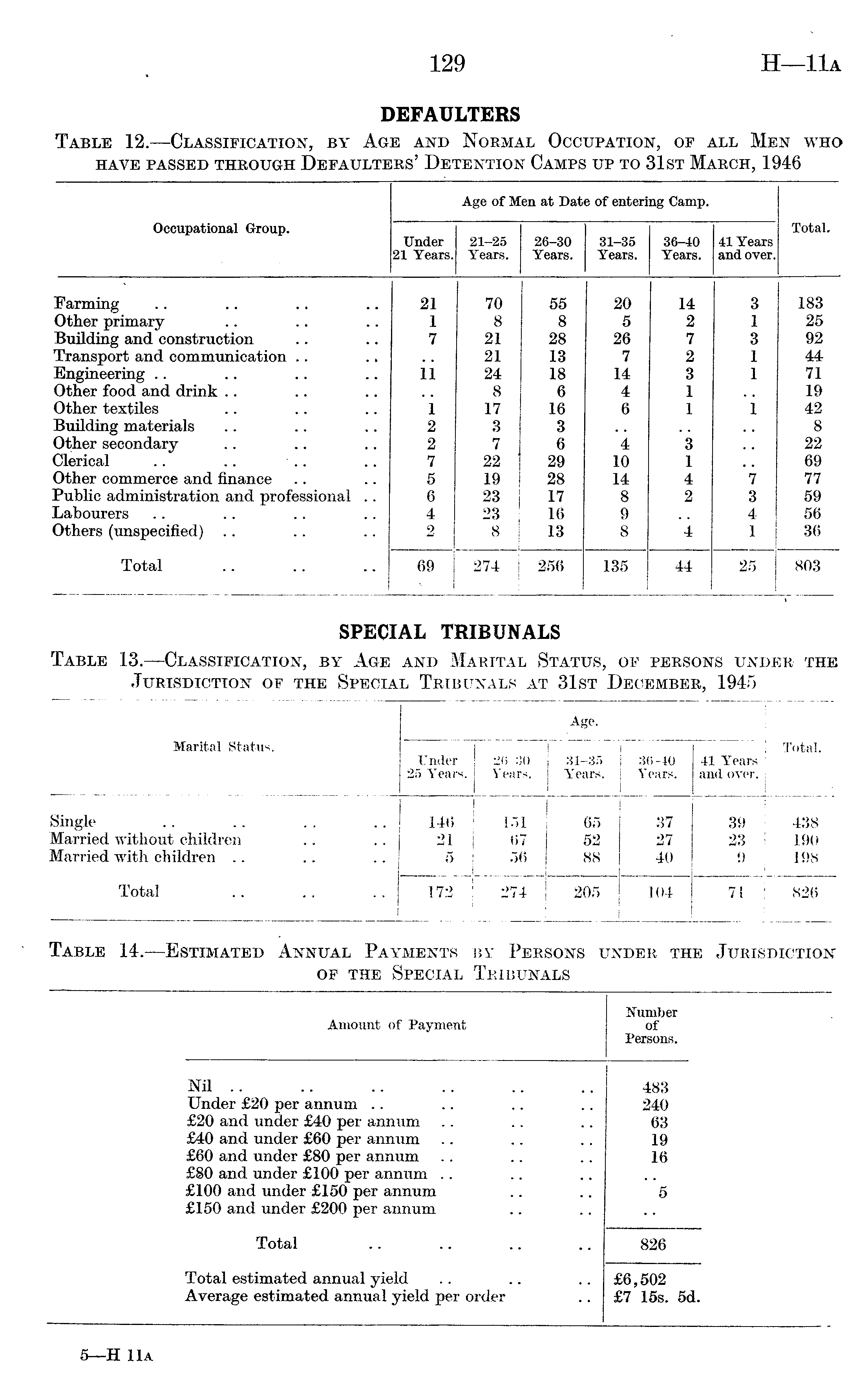 SPECIAL TRIBUNALS Table 13.—Classification, by Age and Marital Status, of persons under the Jurisdiction of the Special Tribunals at 31st December, 1945