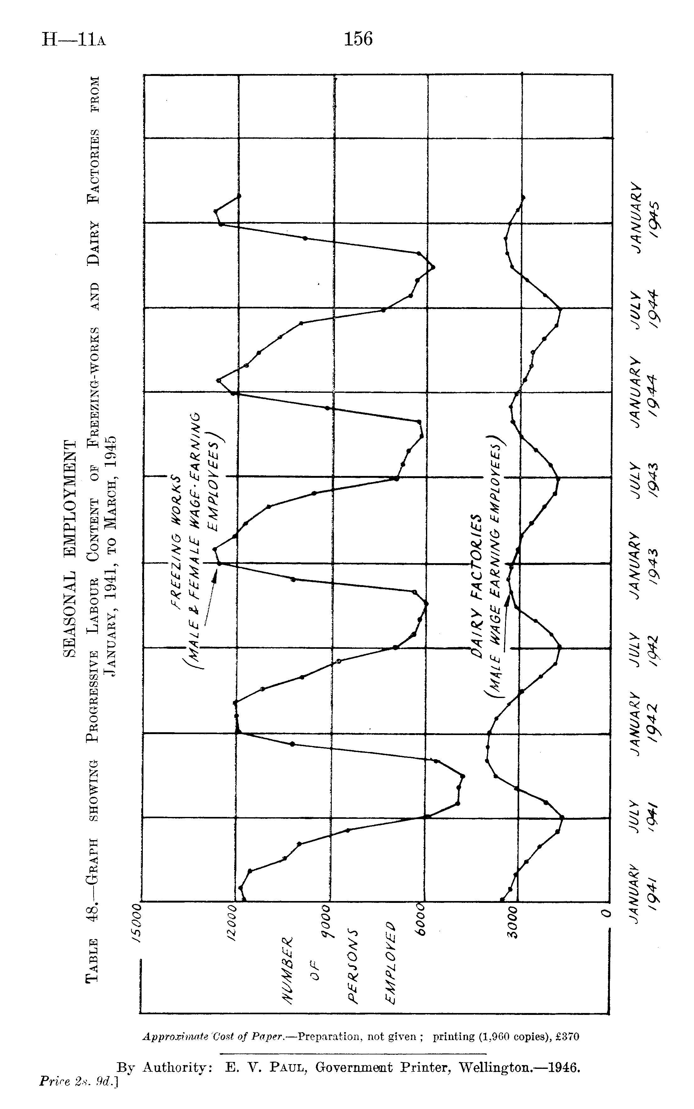 SEASONAL EMPLOYMENT Table 48.—Graph showing Progressive Labour Content of Freezing-works and Dairy Factories from January, 1941, to March, 1945