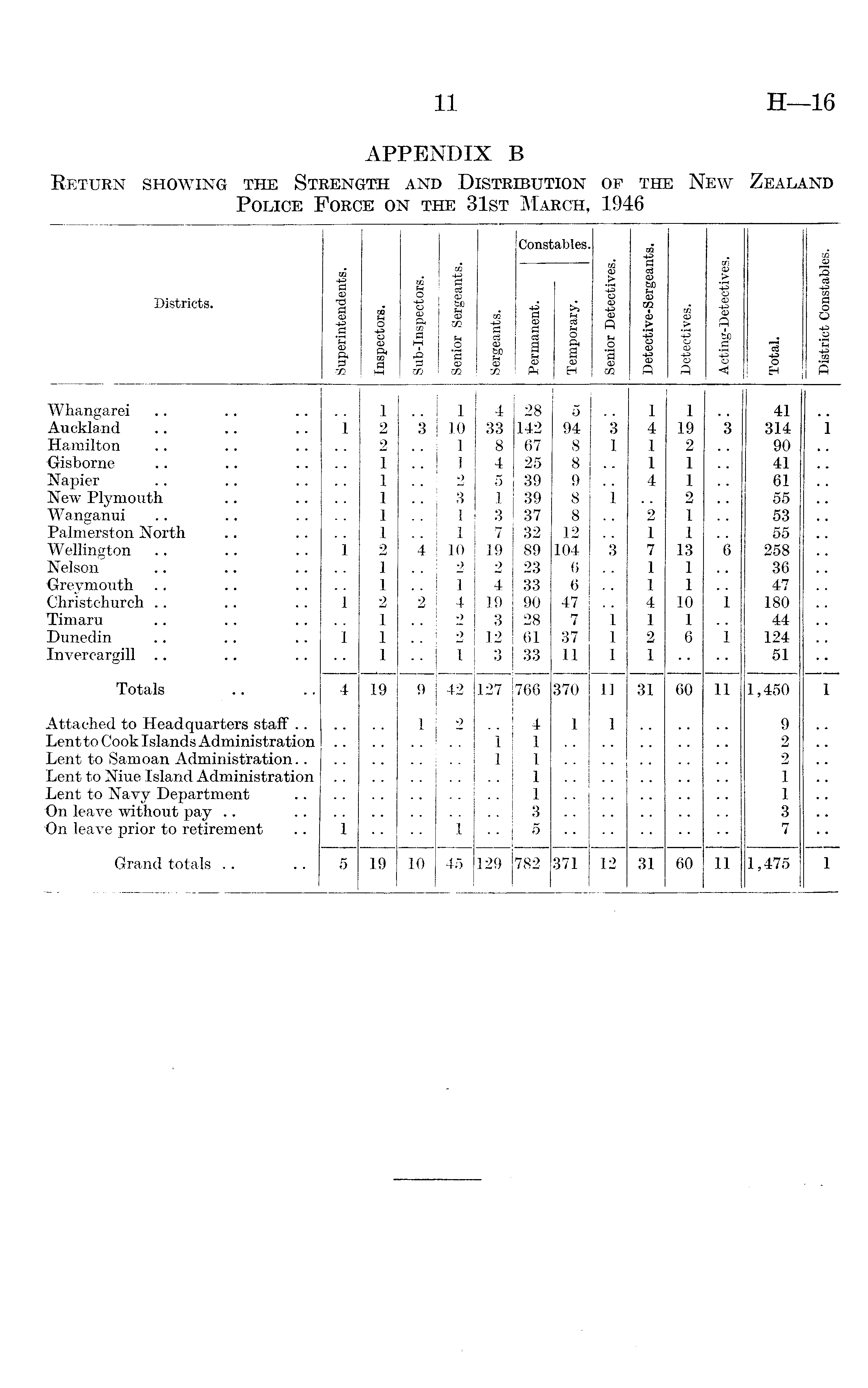 APPENDIX B Return showing the Strength and Distribution of the New Zealand Police Force on the 31st March, 1946