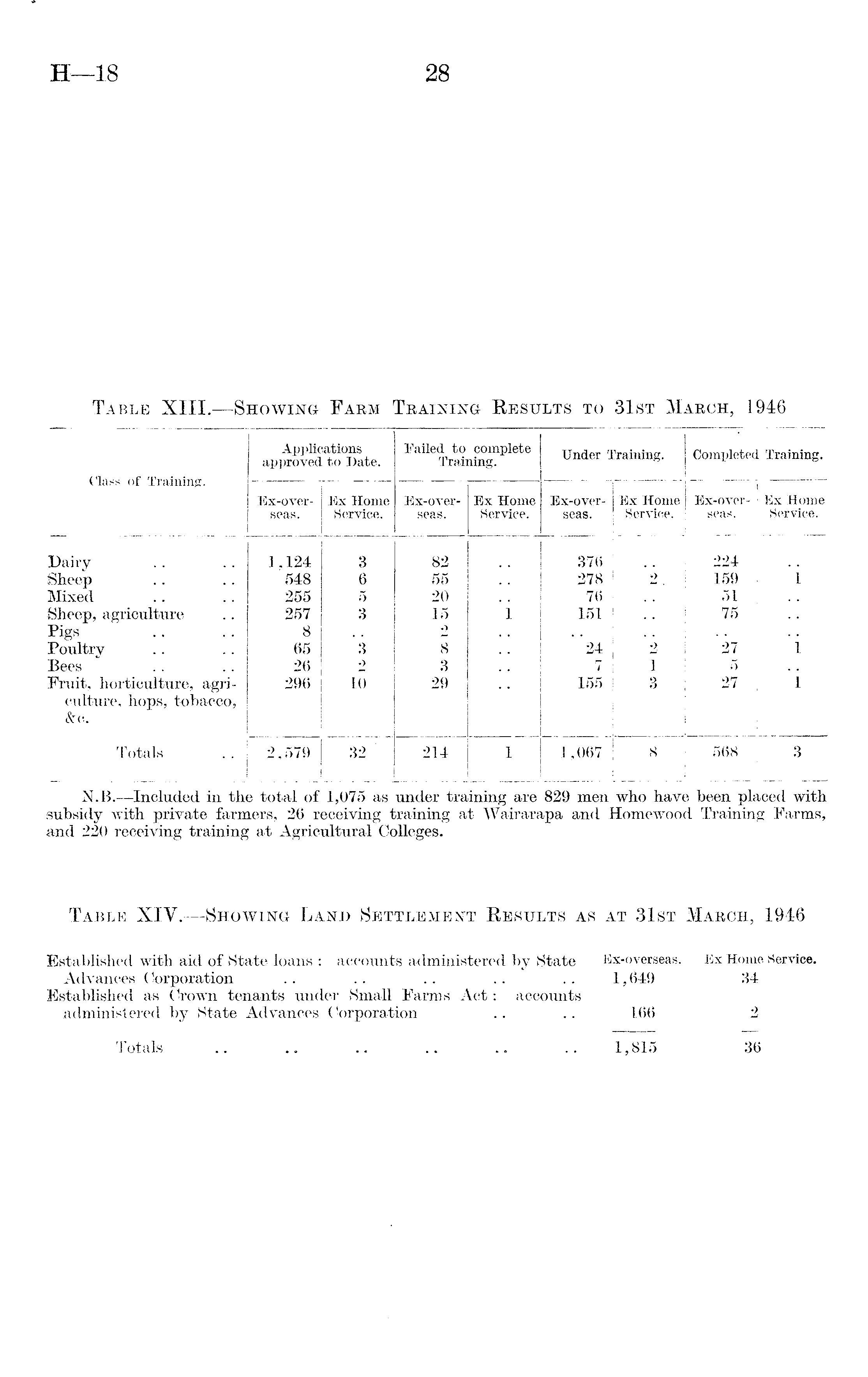 Table XIII. —Showing Farm Training Results to 31st March, 1946