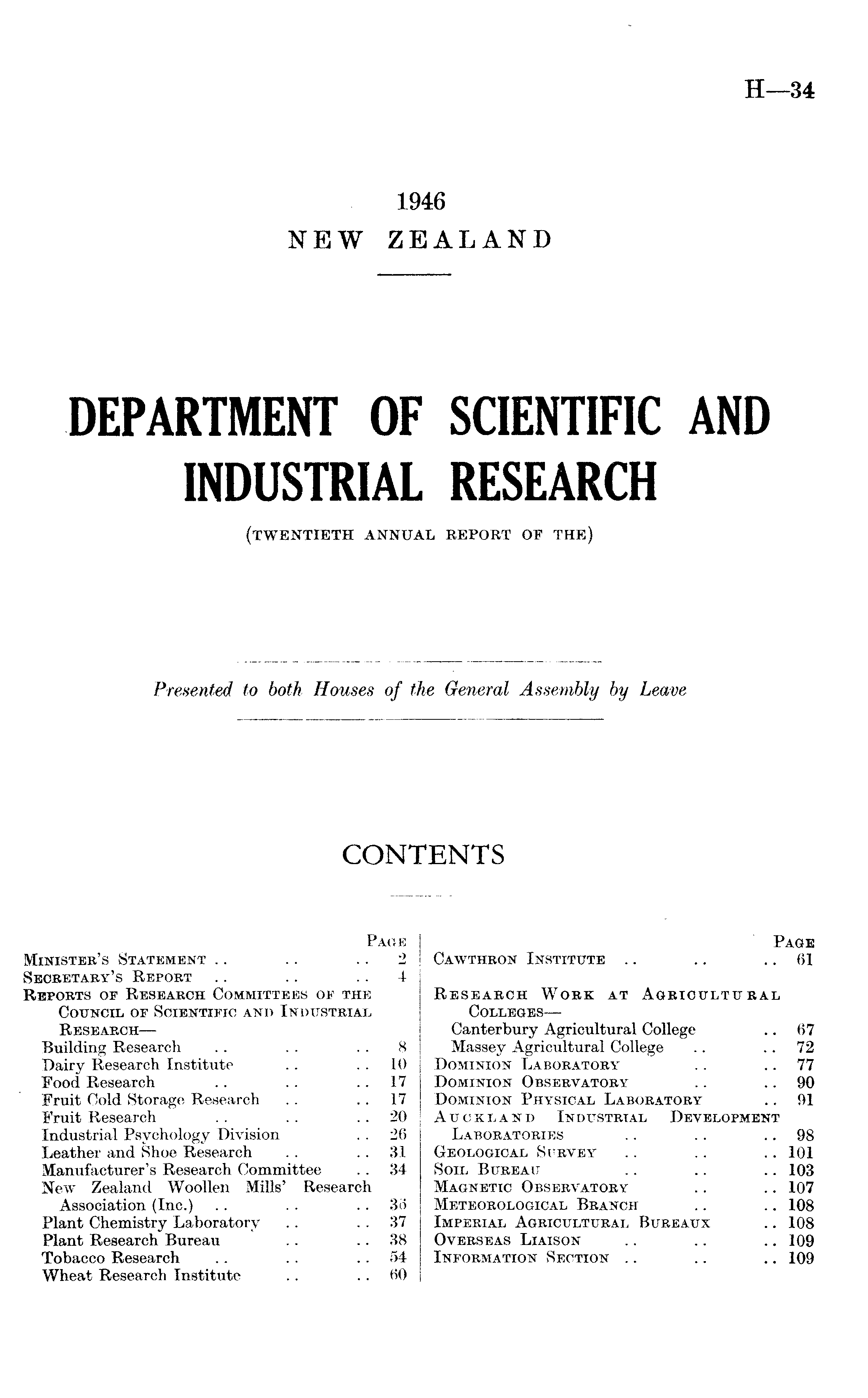 Page Cawthron Institute .. .. .. 61 Research Work at Agricultu ral Colleges— Canterbury Agricultural College .. 67 Massey Agricultural College .. .. 72 Dominion Laboratory .. .. 77 Dominion Observatory .. .. 90 Dominion Physical Laboratory .. 91 Auckland Industrial Development Laboratories .. .. .. 98 Geological Survey .. .. .. 101 Soil Bureau .. .. .. 103 Magnetic Observatory .. .. 107 Meteorological Branch .. .. 108 Imperial Agricultural Bureaux .. 108 Overseas Liaison .. .. .. 109 Information Section .. .. .. 109