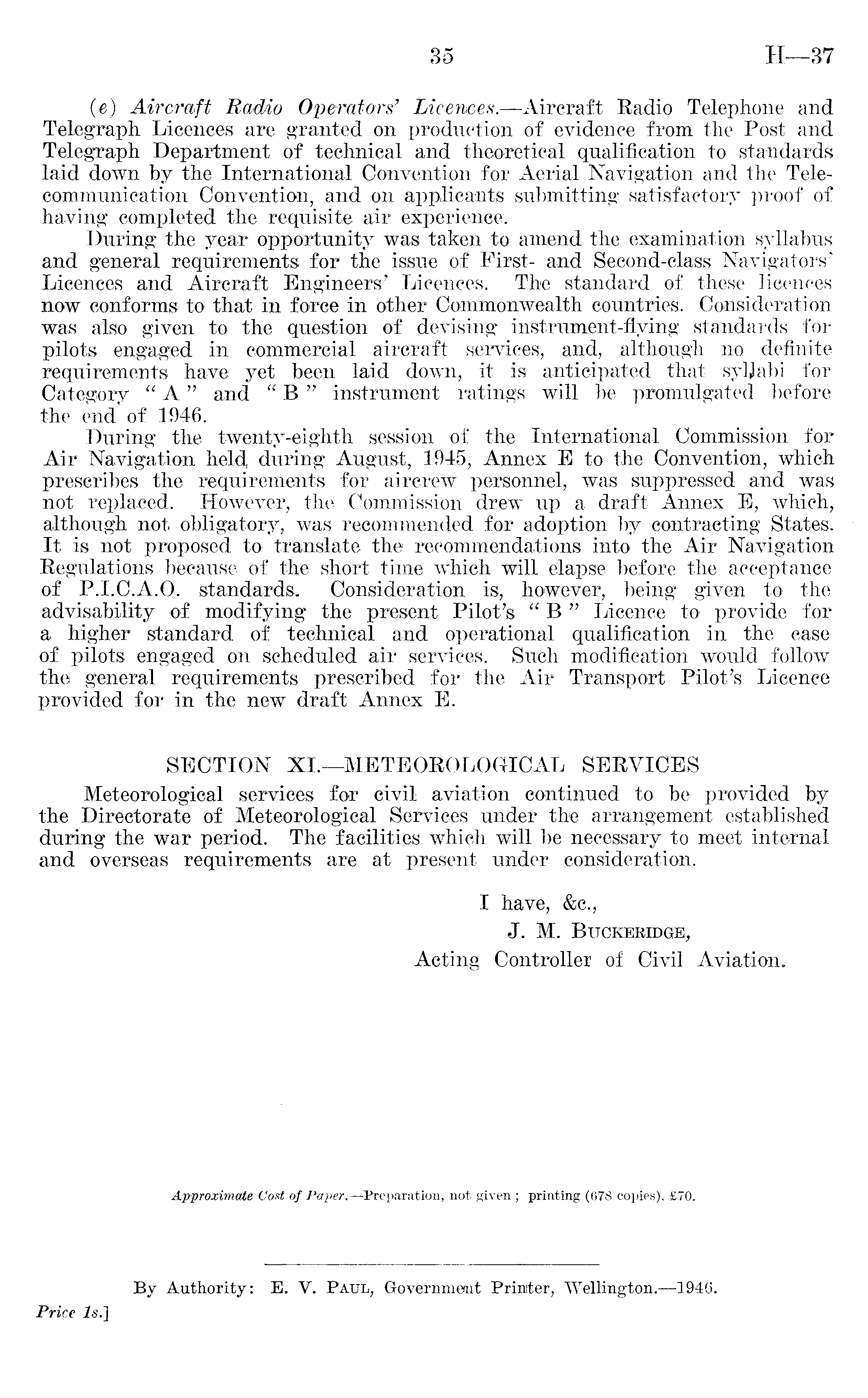 I have, &c., J. M. Buckeridge, Acting Controller of Civil Aviation.
