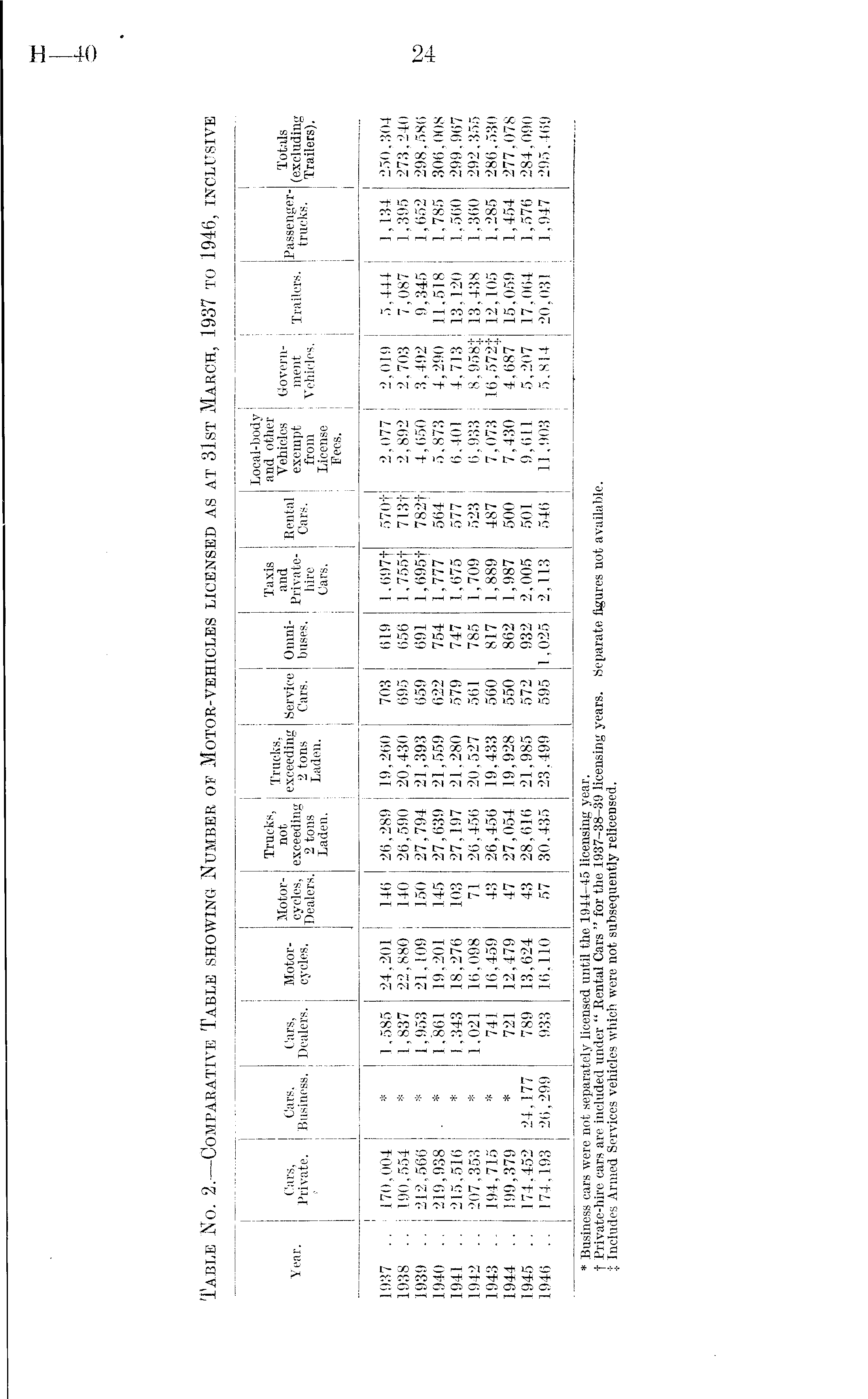 Table No. 2.—Comparative Table showing Number of Motor-vehicles licensed as at 31st March, 1937 to 1946, inclusive