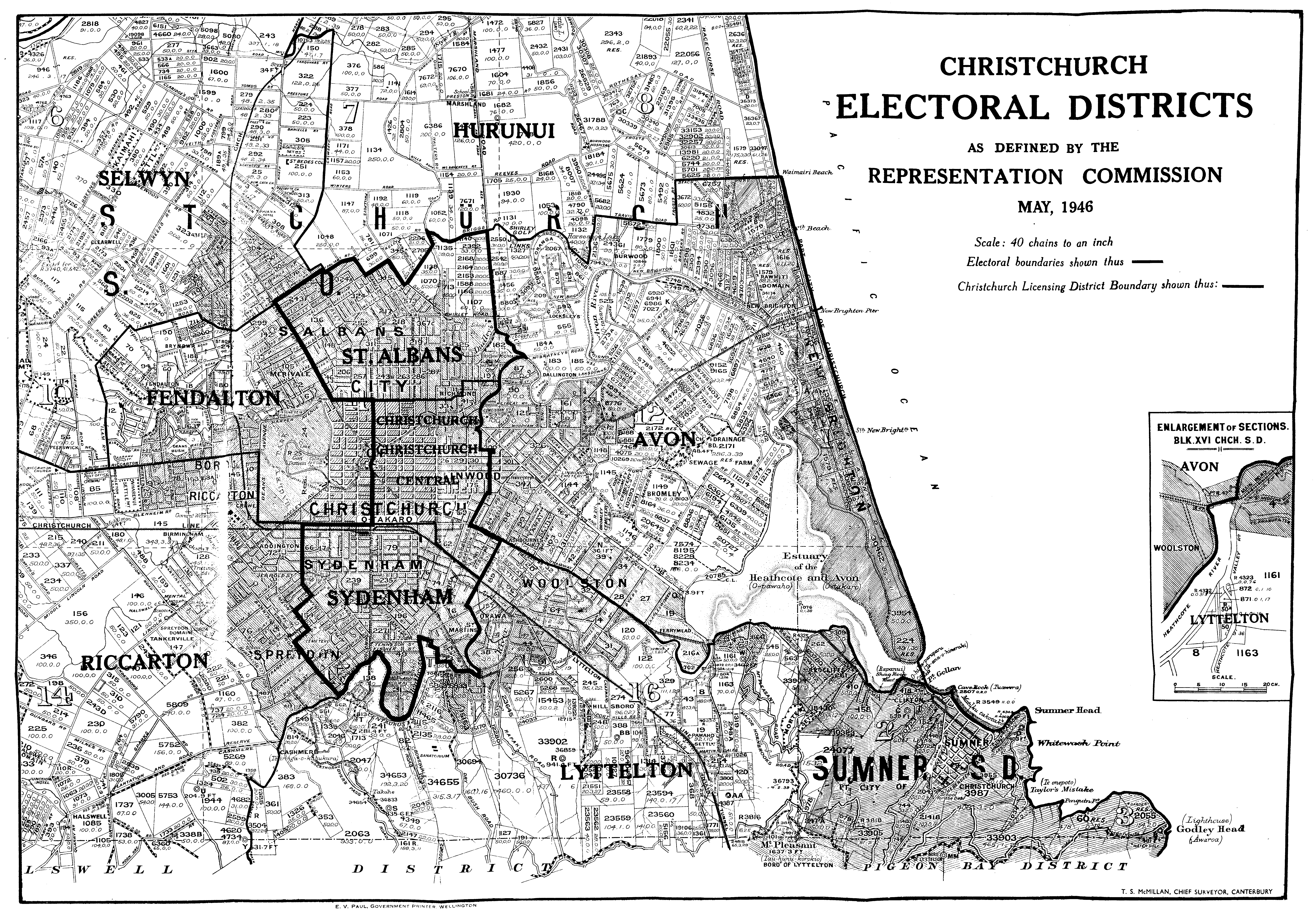 CHRISTCHURCH ELECTORAL DISTRICTS AS DEFINED BY THE REPRESENTATION COMMISSION MAY, 1946