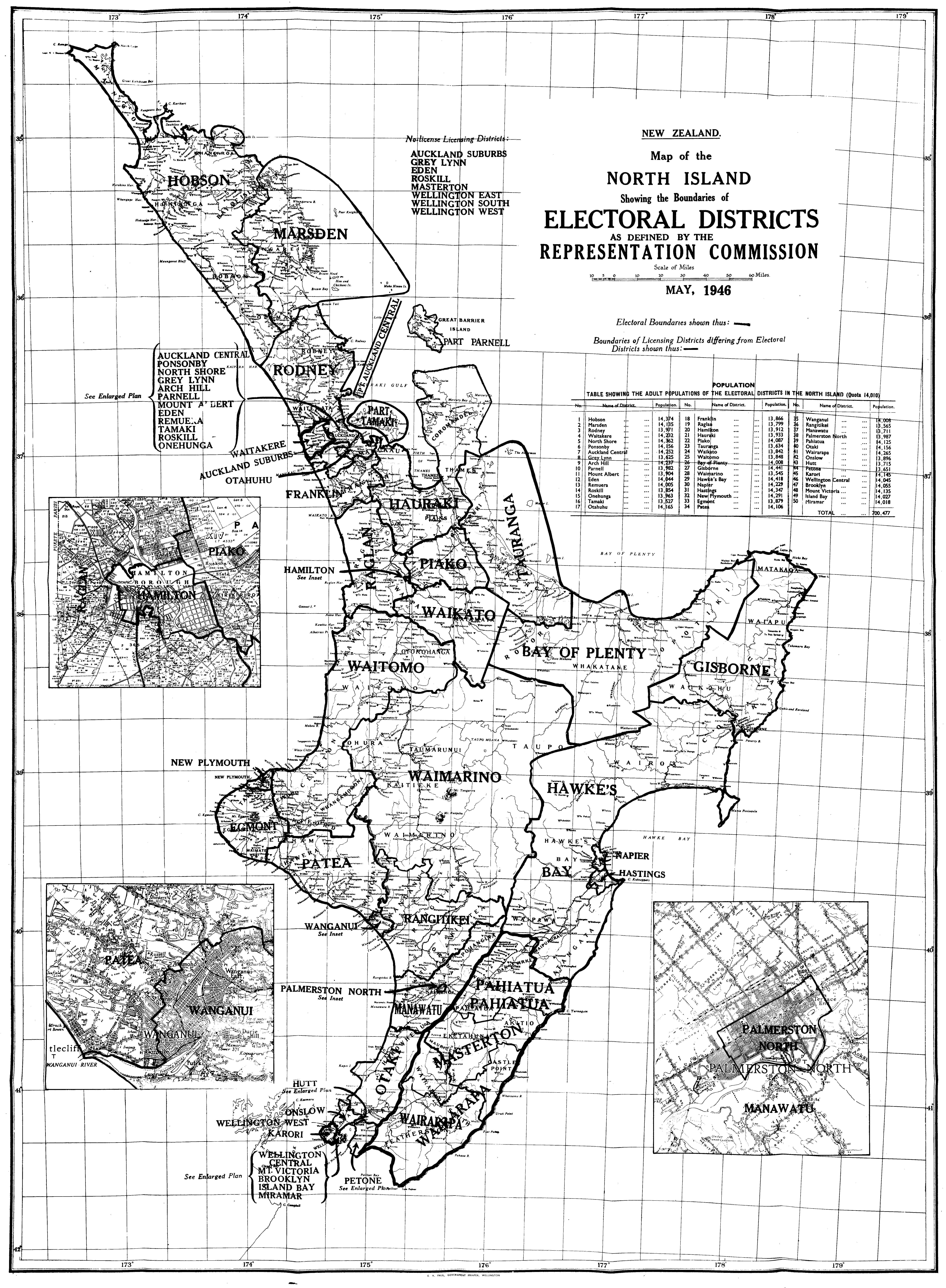 NEW ZEALAND. Map of the NORTH ISLAND Showing the Boundaries of ELECTORAL DISTRICTS AS DEFINED BY THE REPRESENTATION COMMISSION