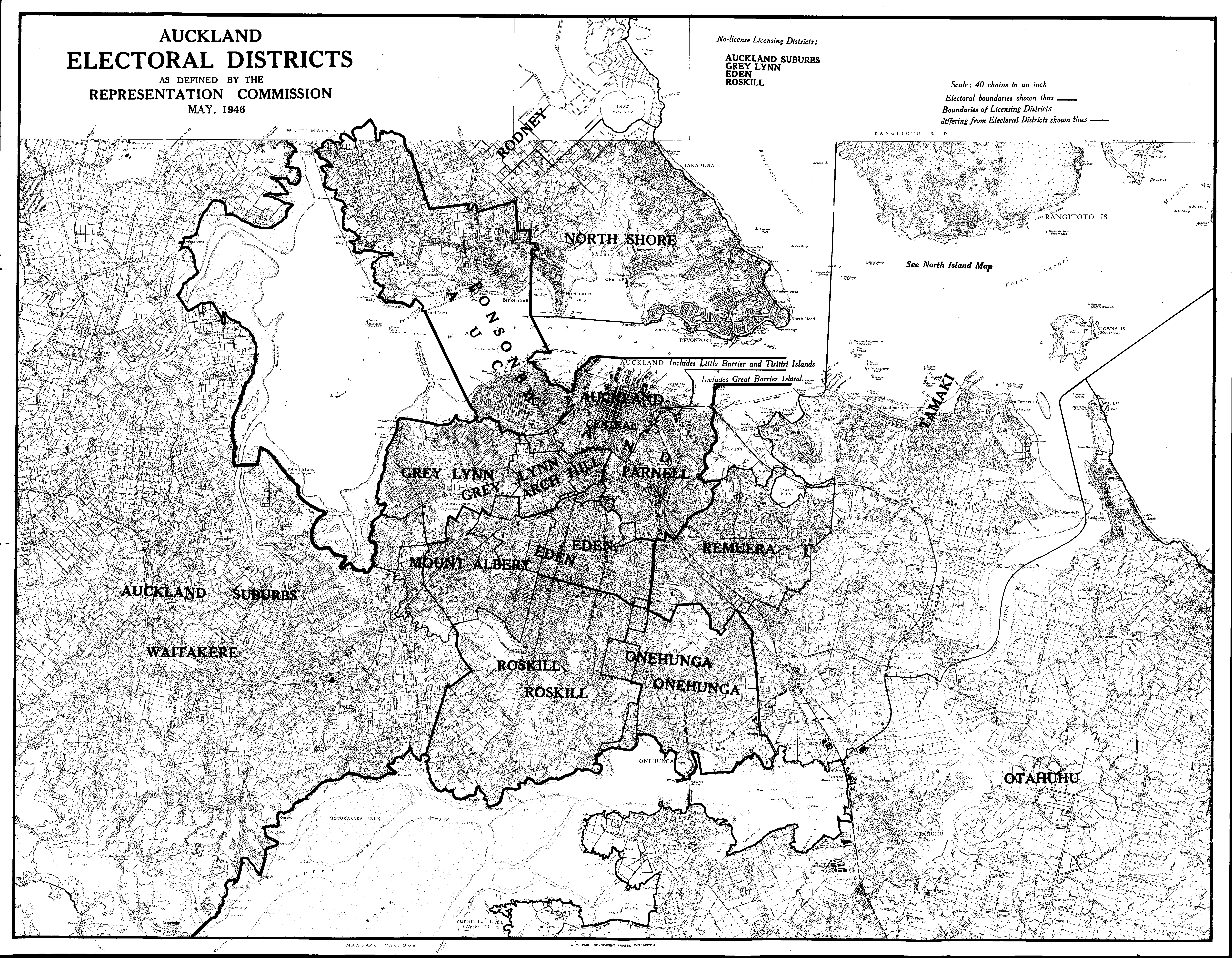 AUCKLAND ELECTORAL DISTRICTS AS DEFINED BY THE REPRESENTATION COMMISSION MAY, 1946