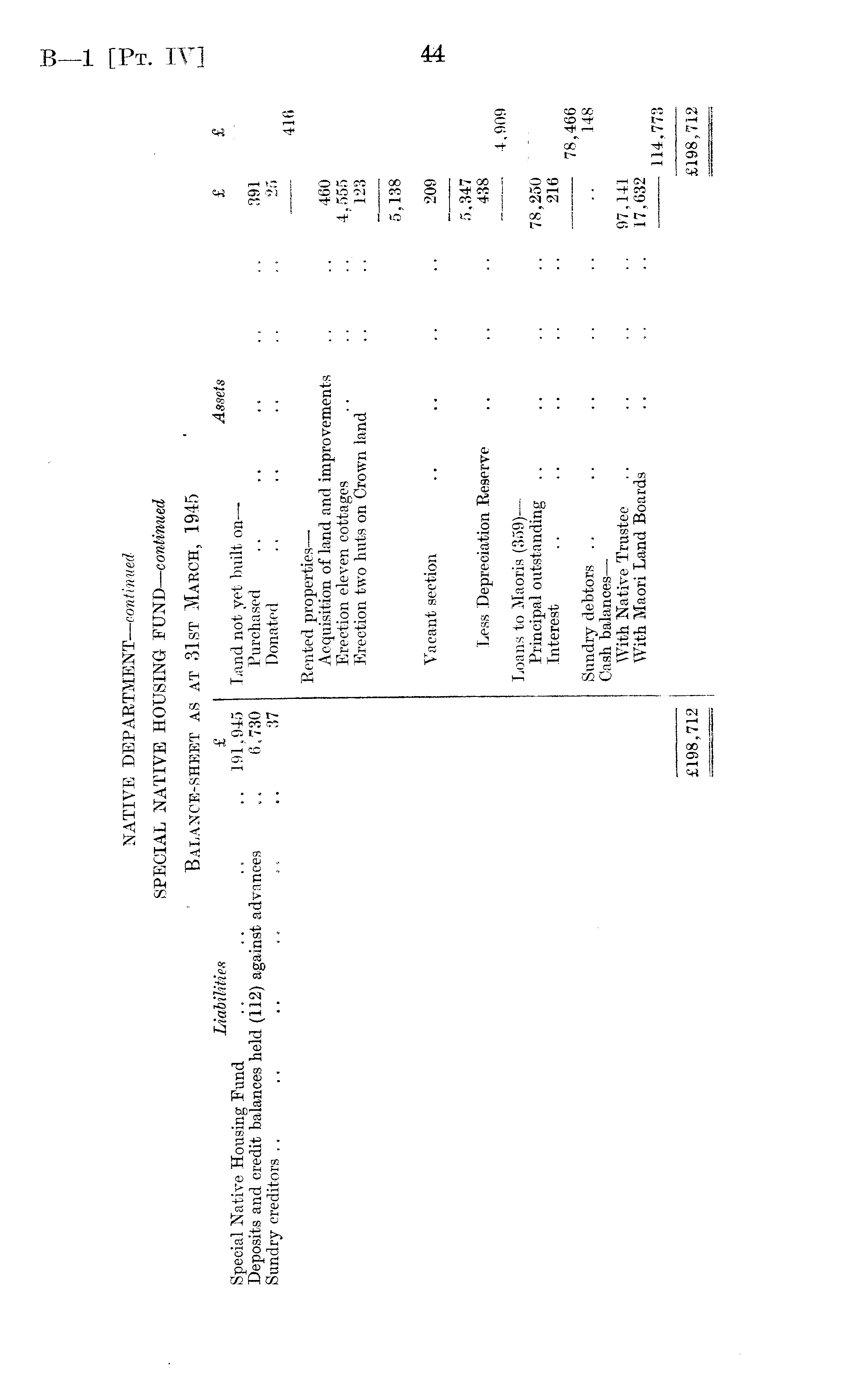 NATIVE DEPARTMENT— continued SPECIAL NATIVE HOUSING FUND—continued Balance-sheet as at 31st March, 1945