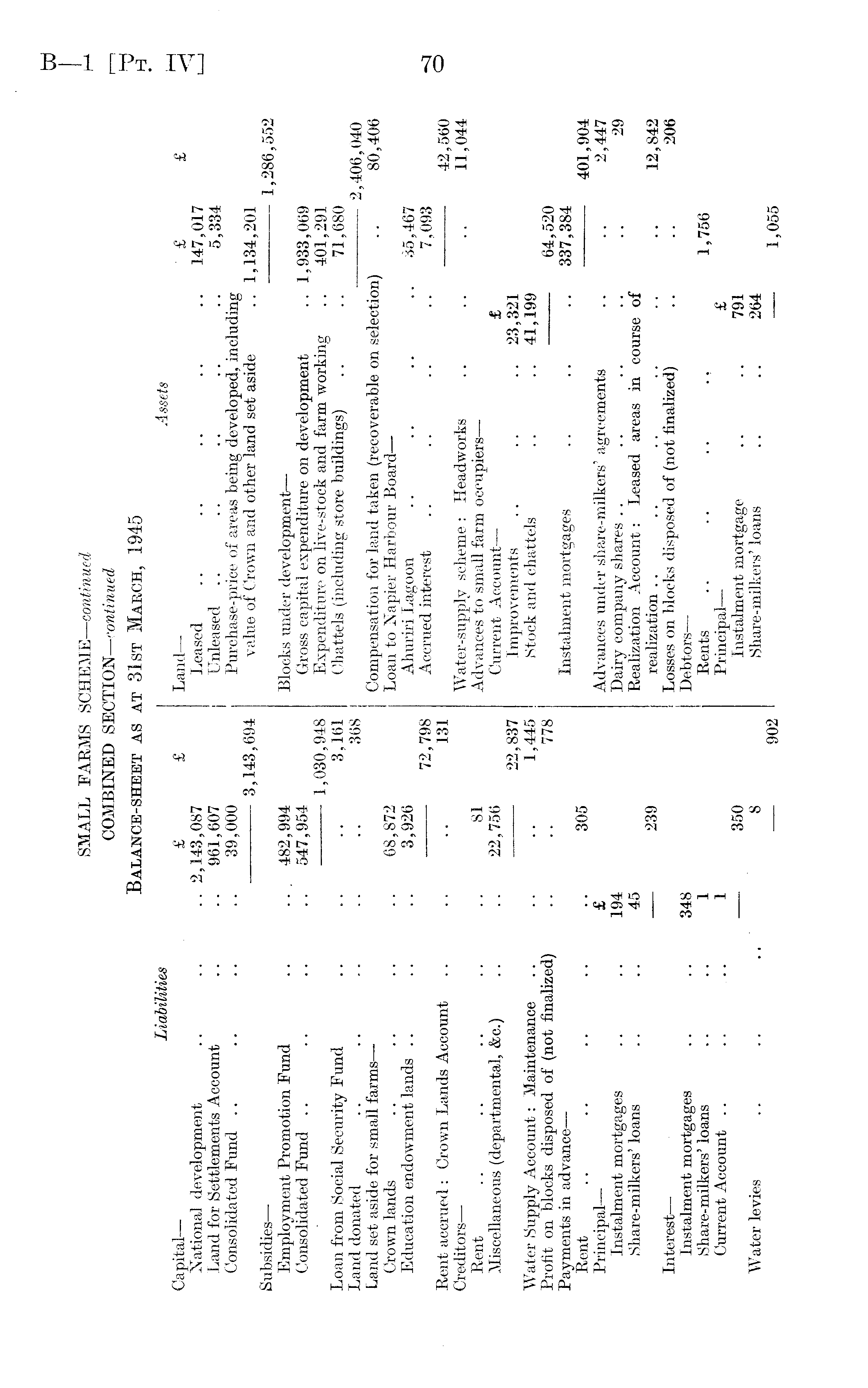 SMALL FARMS SCHEME— continued COMBINED SECTION— continued Balance-sheet as at 31st March, 1945