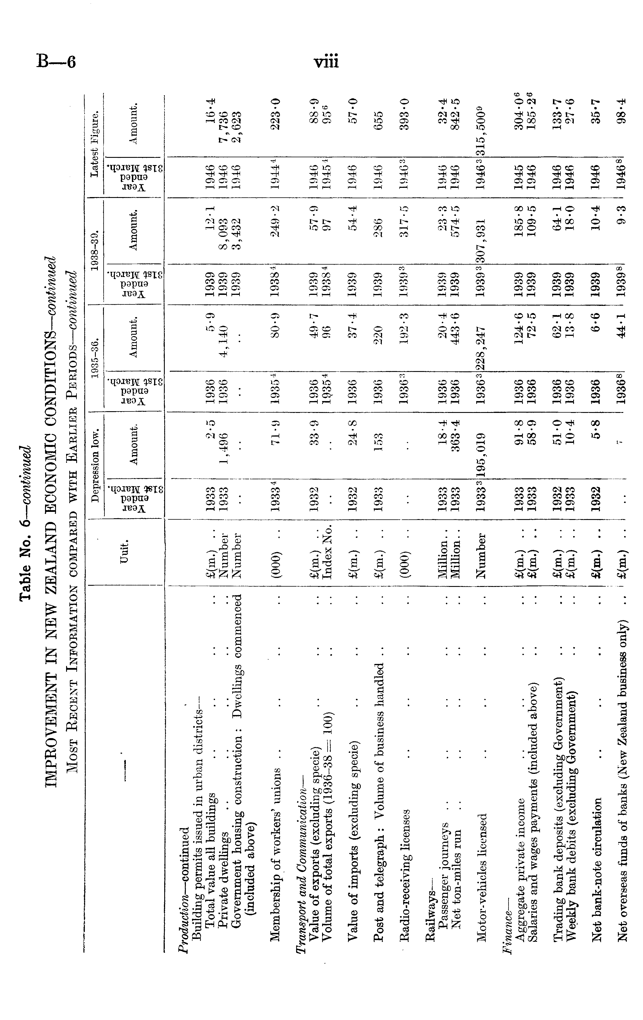 Table No. 6—continued IMPROVEMENT IN NEW ZEALAND ECONOMIC CONDITIONS— continued Most Recent Information compared with Earlier Periods— continued