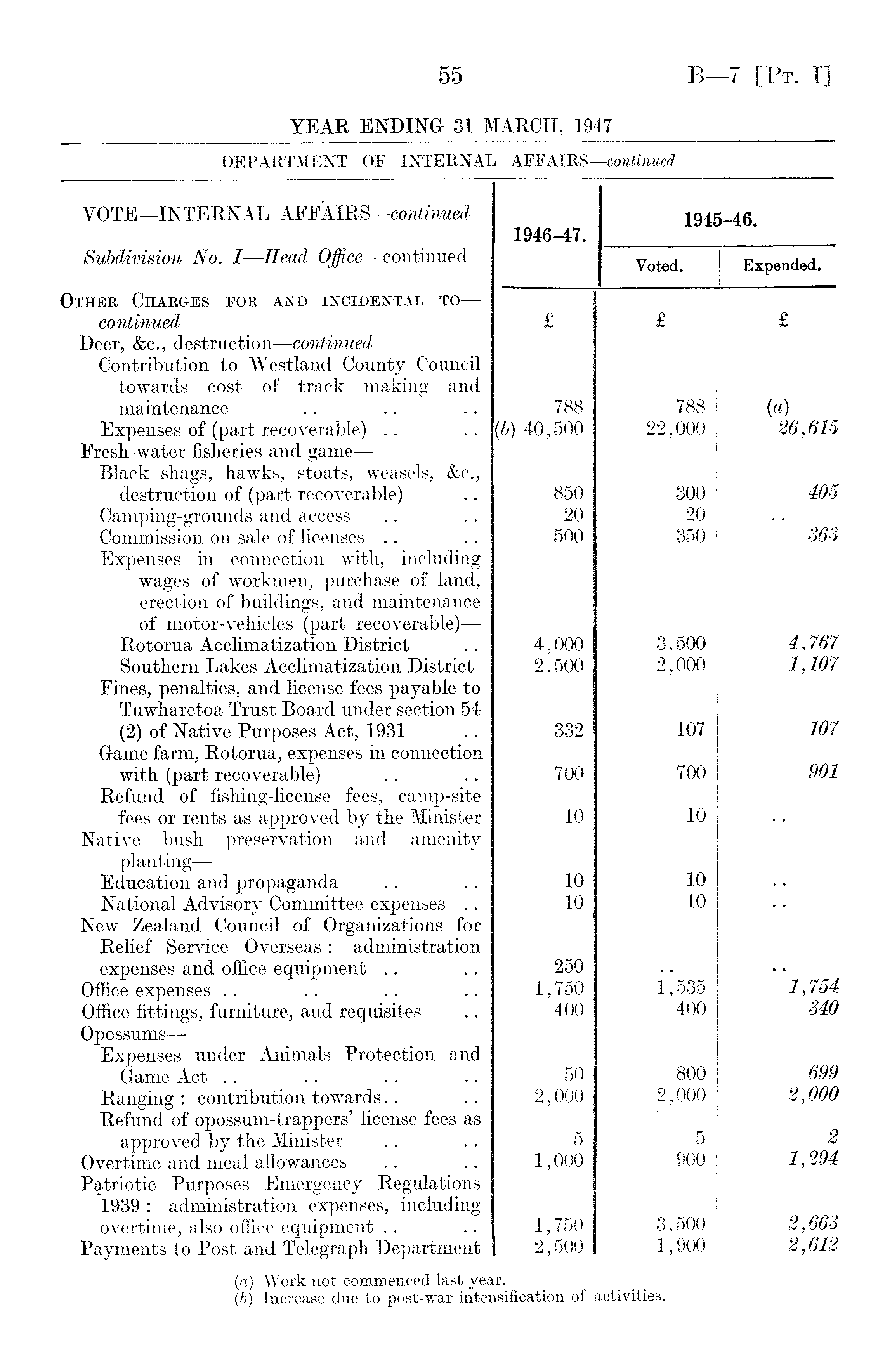 (а) Work not commenced last year. (б) Increase due to post-war intensification of activities.