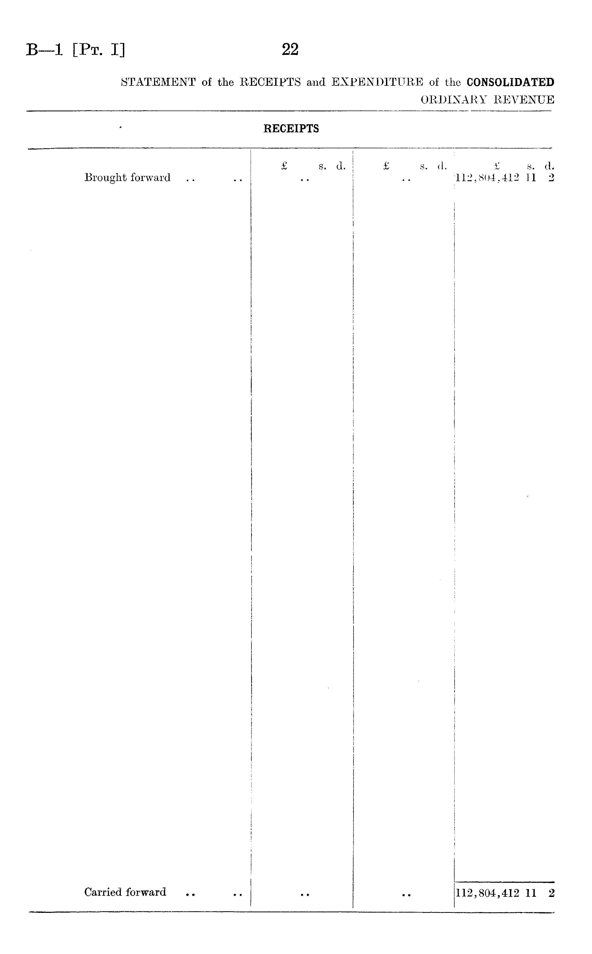RECEIPTS £ s. d. £ s. d. £ s. d. Brought forward 112,804,412 11 2 ' % 'i Carried forward •• 112,804,412 11 2
