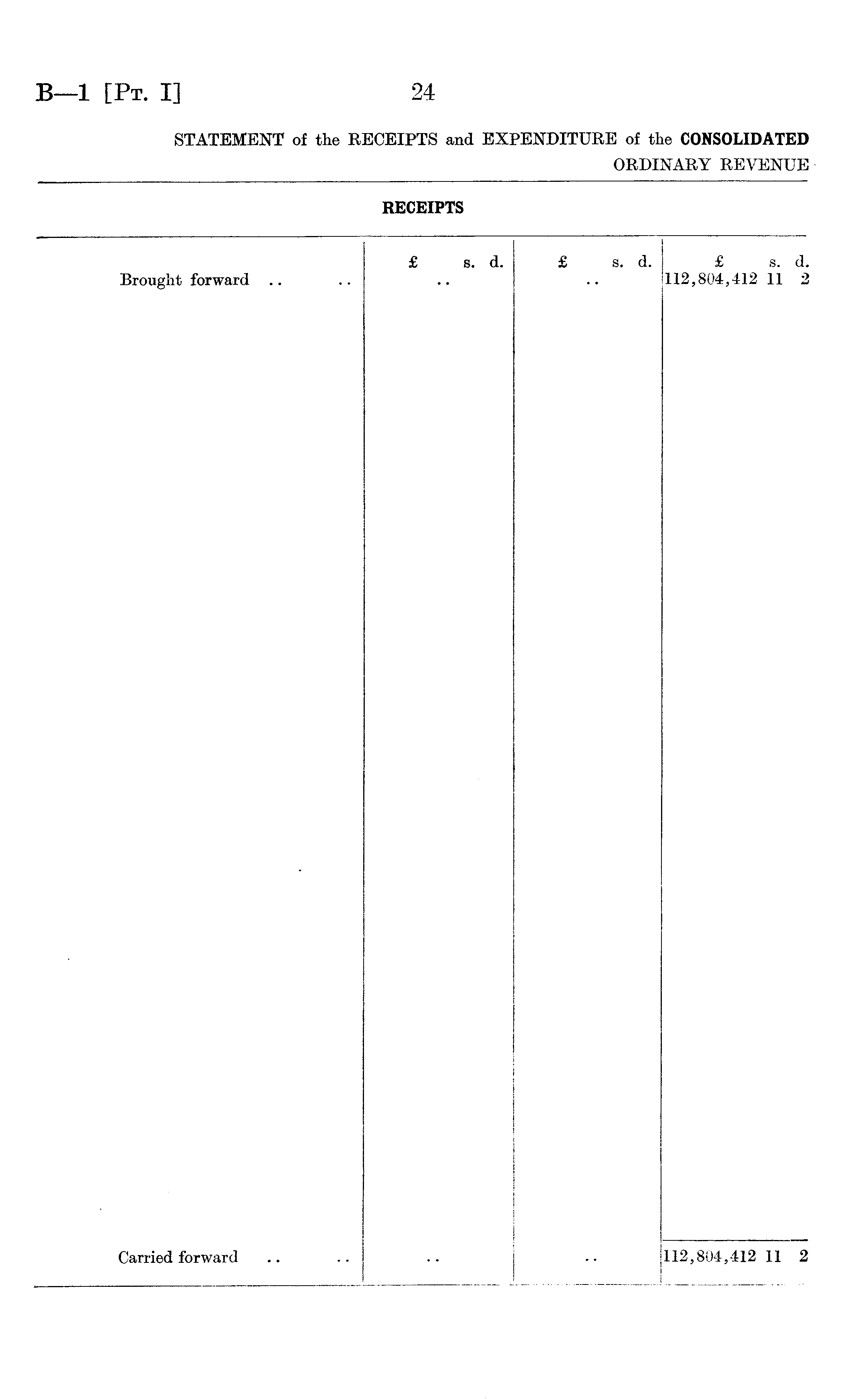 RECEIPTS £ s. d. £ s. d. £ s. d. Brought forward 112,804,412 11 2 Carried forward 112,804,412 11 2