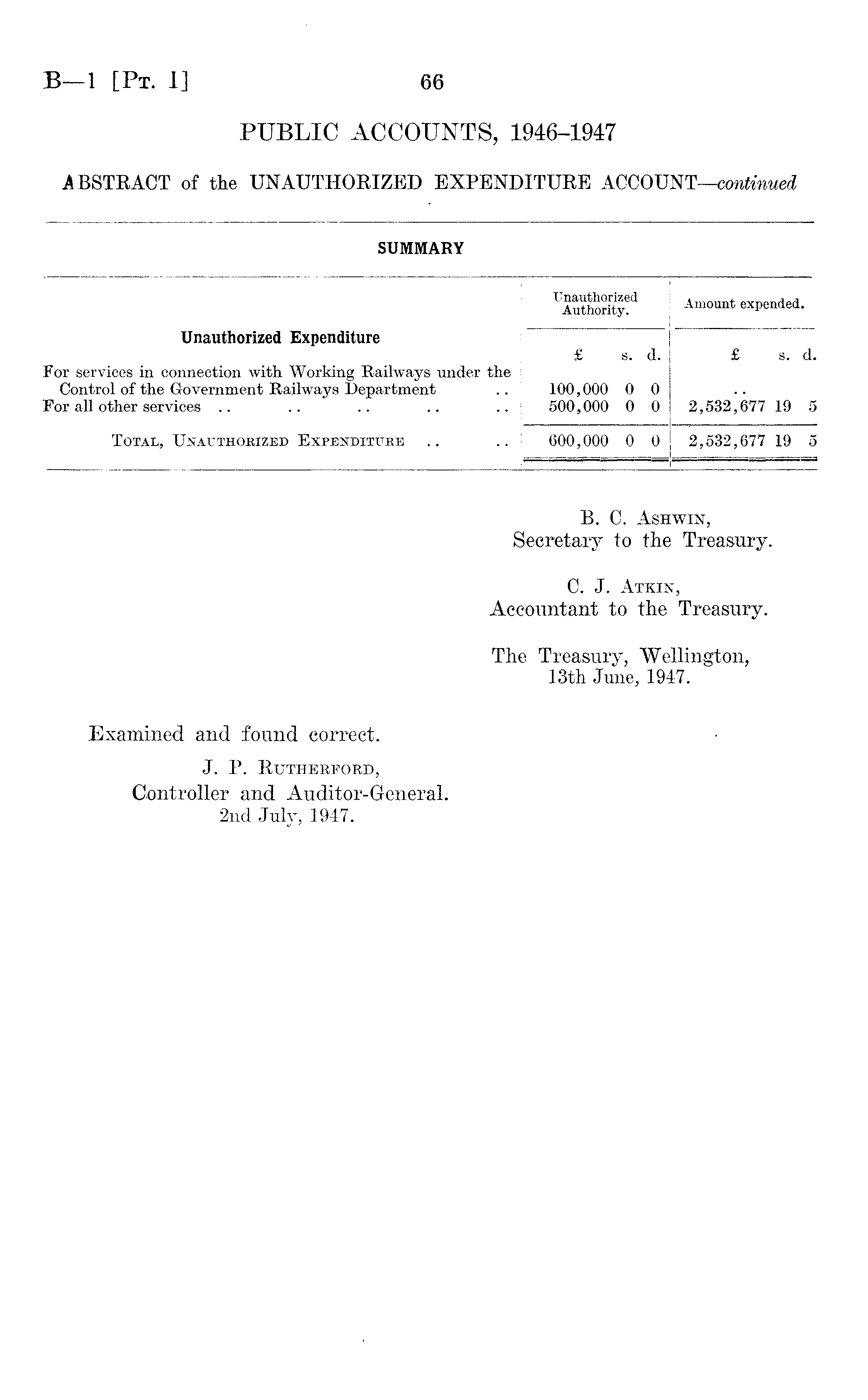 B. C. Ashwin, Secretary to the Treasury. C. J. Atkin, Accountant to the Treasury. The Treasury, Wellington, 13th June, 1947.