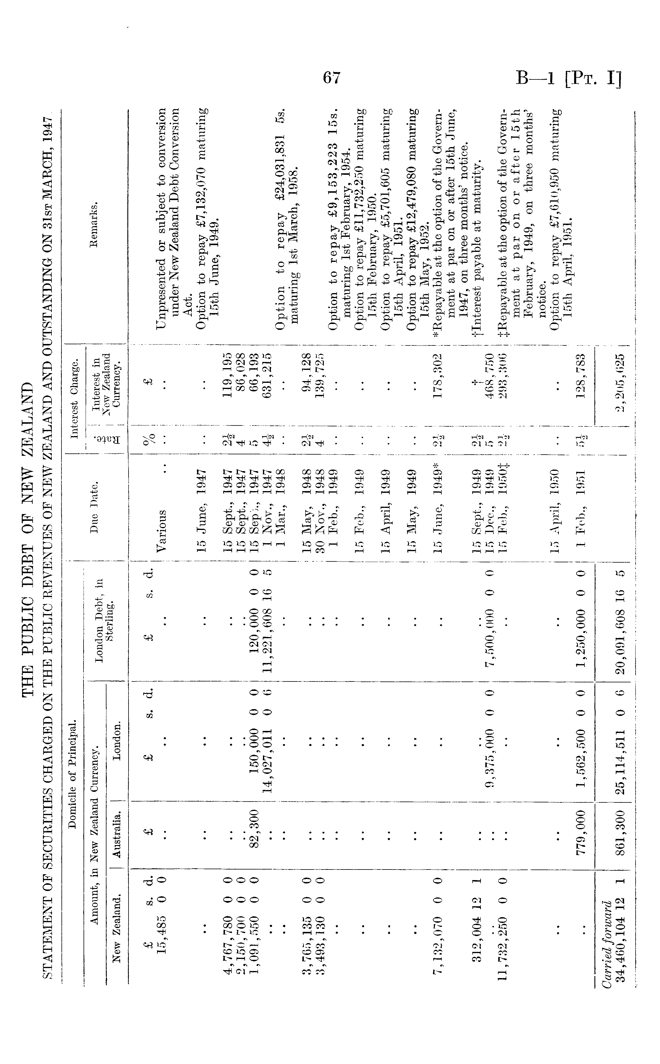 THE PUBLIC DEBT OF NEW ZEALAND STATEMENT OF SECURITIES CHARGED ON THE PUBLIC REVENUES OF NEW ZEALAND AND OUTSTANDING ON 31st MARCH, 1947