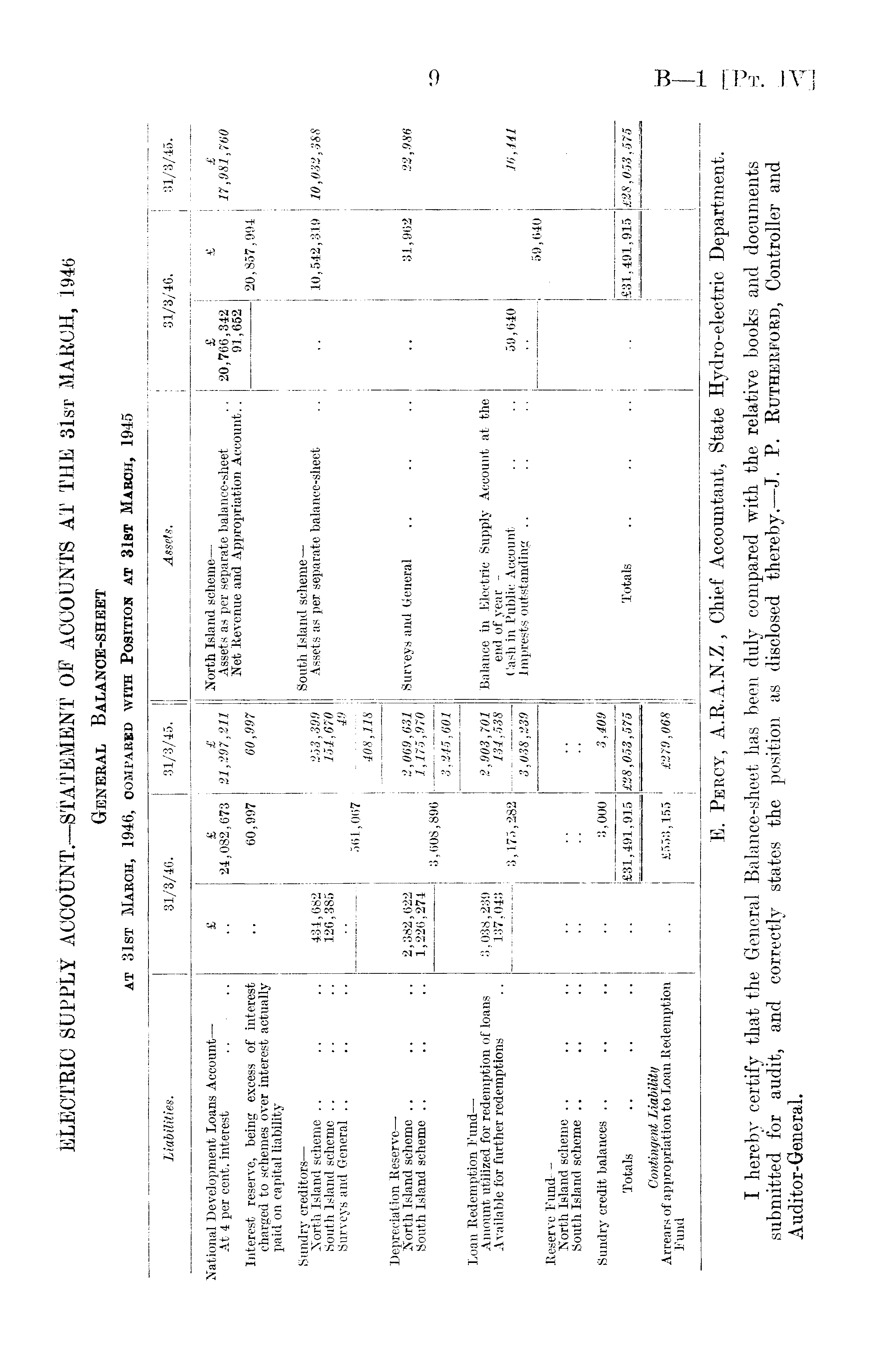 E. Percy, A.R.A.N.Z ~ Chief Accountant, State Hydro-electric Department. I hereby certify that the General Balance-sheet has been duly compared with the relative books and documents submitted for audit, and correctly states the position as disclosed thereby.— J. P. Rutherford, Controller and Auditor- General.