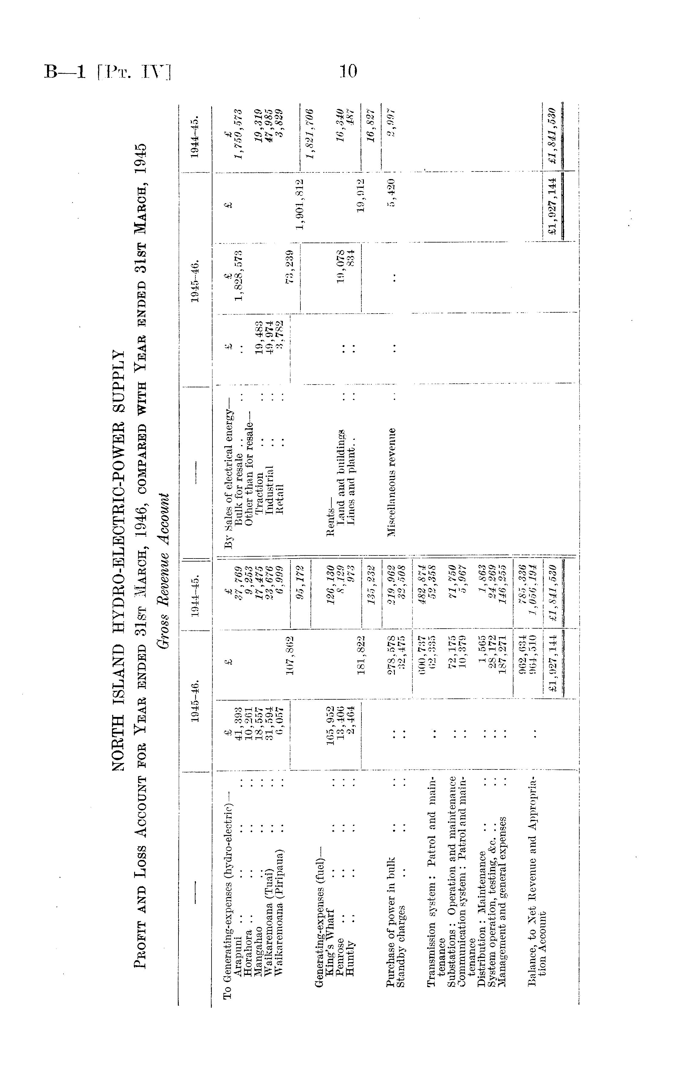 NORTH ISLAND HYDRO-ELECTRIC-POWER SUPPLY Profit and Loss Account for Year ended 31st March, 1946, compared with Year ended 31st March, 1945 Gross Revenue Account
