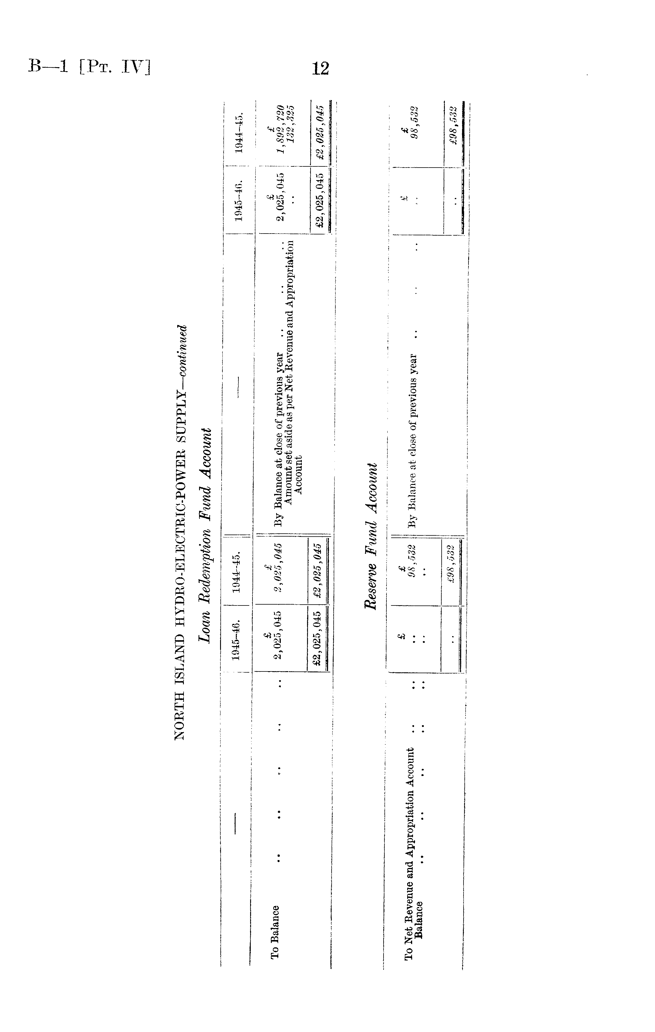 Loan Redemption Fund Account — 1945-46. 1044-45. 1945-46. 1 1944-45. To Balance £ 2,025,045 £ 2,025,045 By Balance at close of previous year Amount set aside as per Net Revenue and Appropriation Account £ 2,025,045 £ 1,892,720 132,325 £2,025,045 £2,025,045 £2,025,045 £2,025,045 Reserve Fund Account To Net Revenue and Appropriation Account Balance £ £ 98,532 By Balance at close of previous year £ £ 98,532 £98,532 £98,532