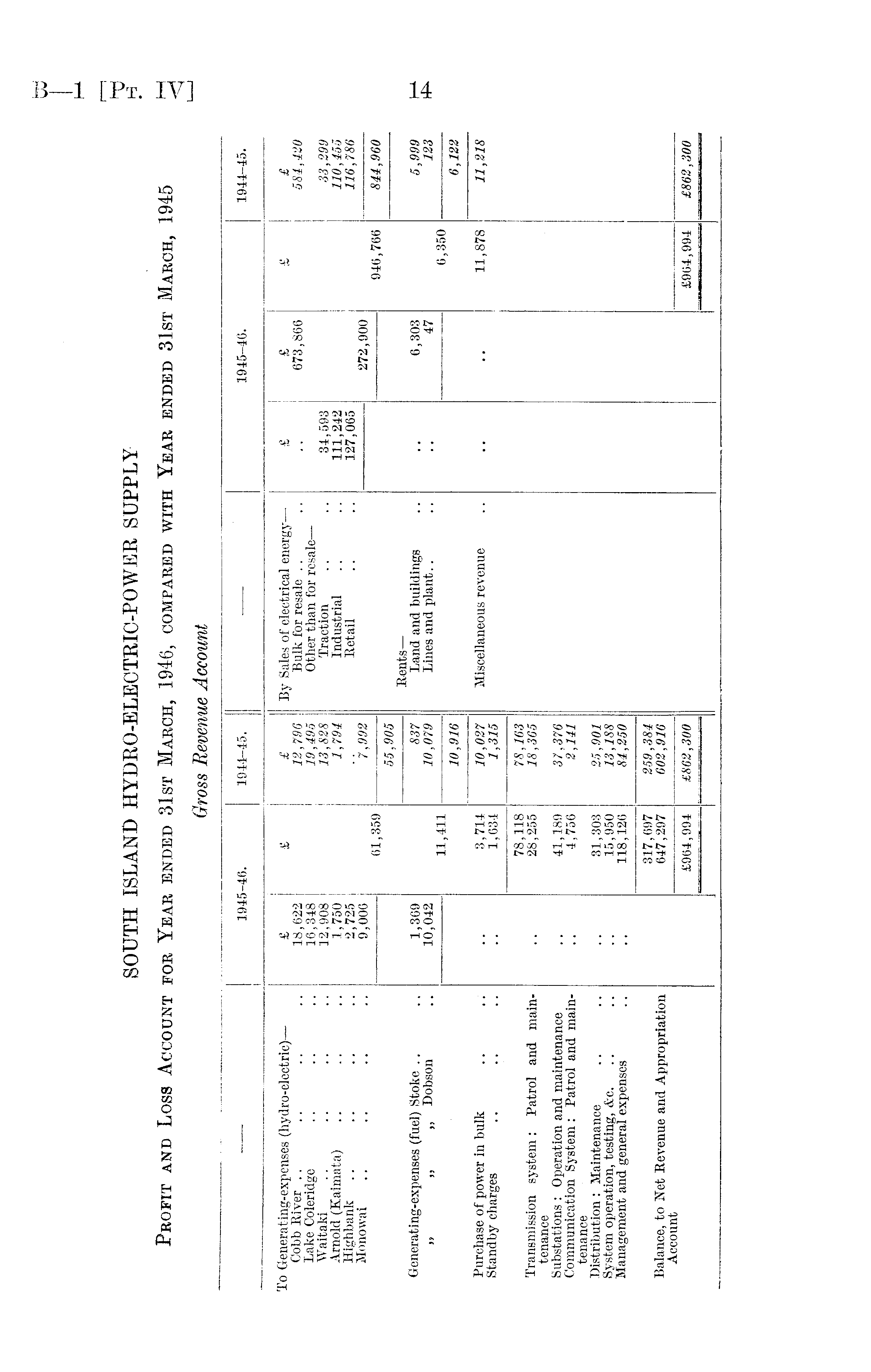 SOUTH ISLAND HYDRO-ELECTRIC-POWER SUPPLY Profit and Loss Account for Year ended 31st March, 1946, compared with Year ended 31st March, 1945 Gross Revenue Account