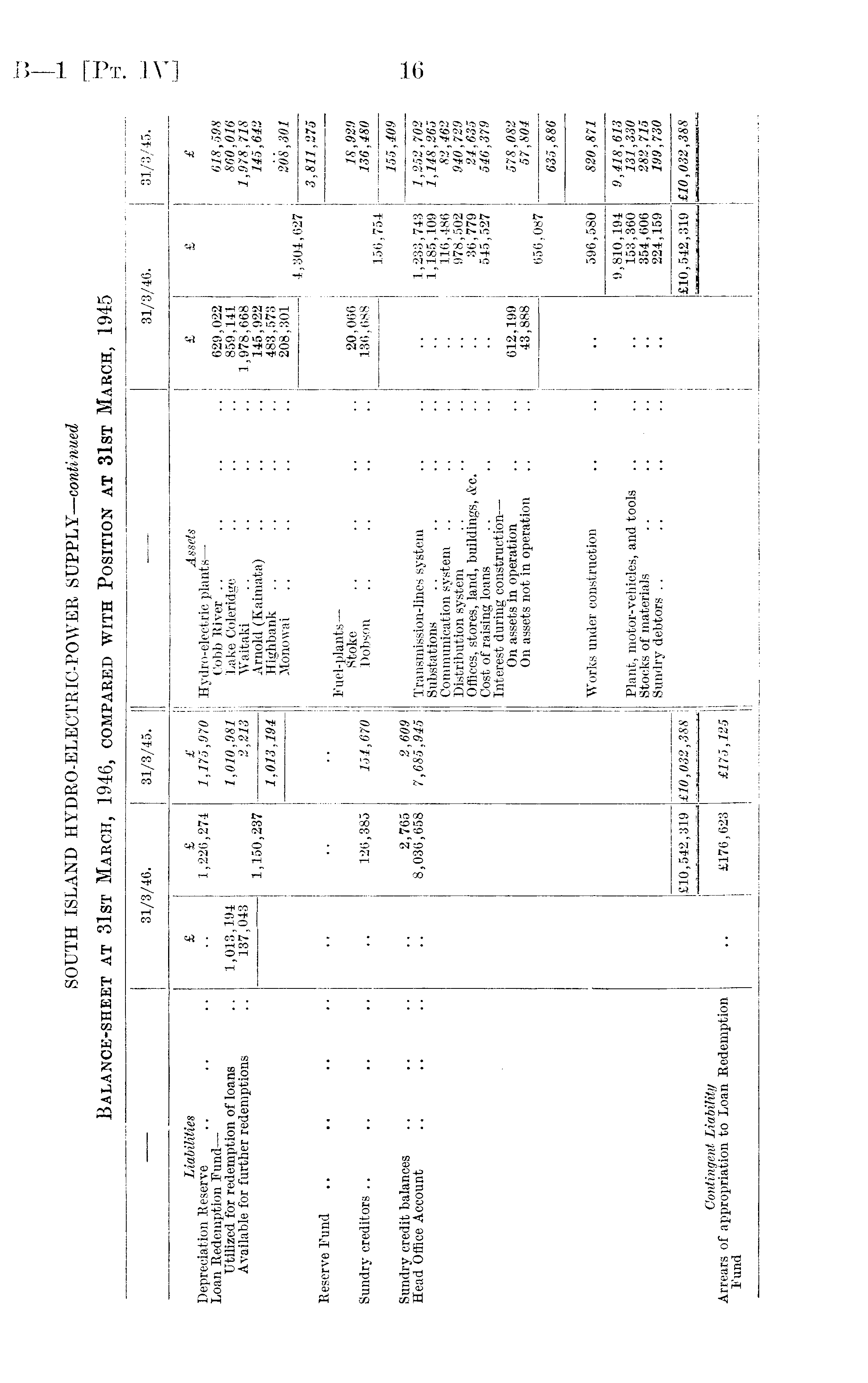 SOUTH ISLAND HYDRO-ELECTRIC-POWER SUPPLY— continued Balance-sheet at 31st March, 1946, compared with Position at 31st March, 1945