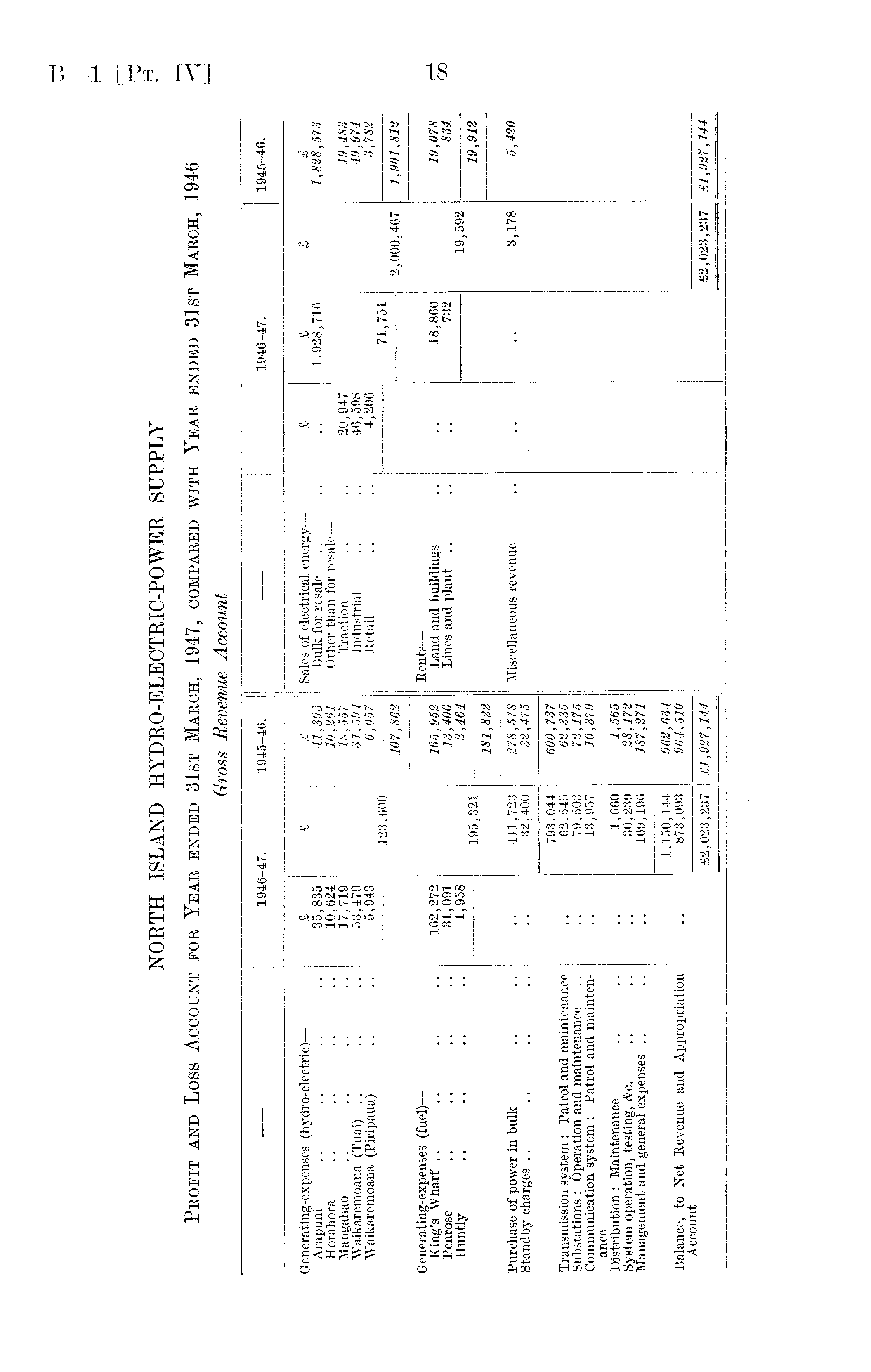 NORTH ISLAND HYDRO-ELECTRIC-POWER SUPPLY Profit and Loss Account for Year ended 31st March, 1947, compared with Year ended 31st March, 1946 Gross Revenue Account