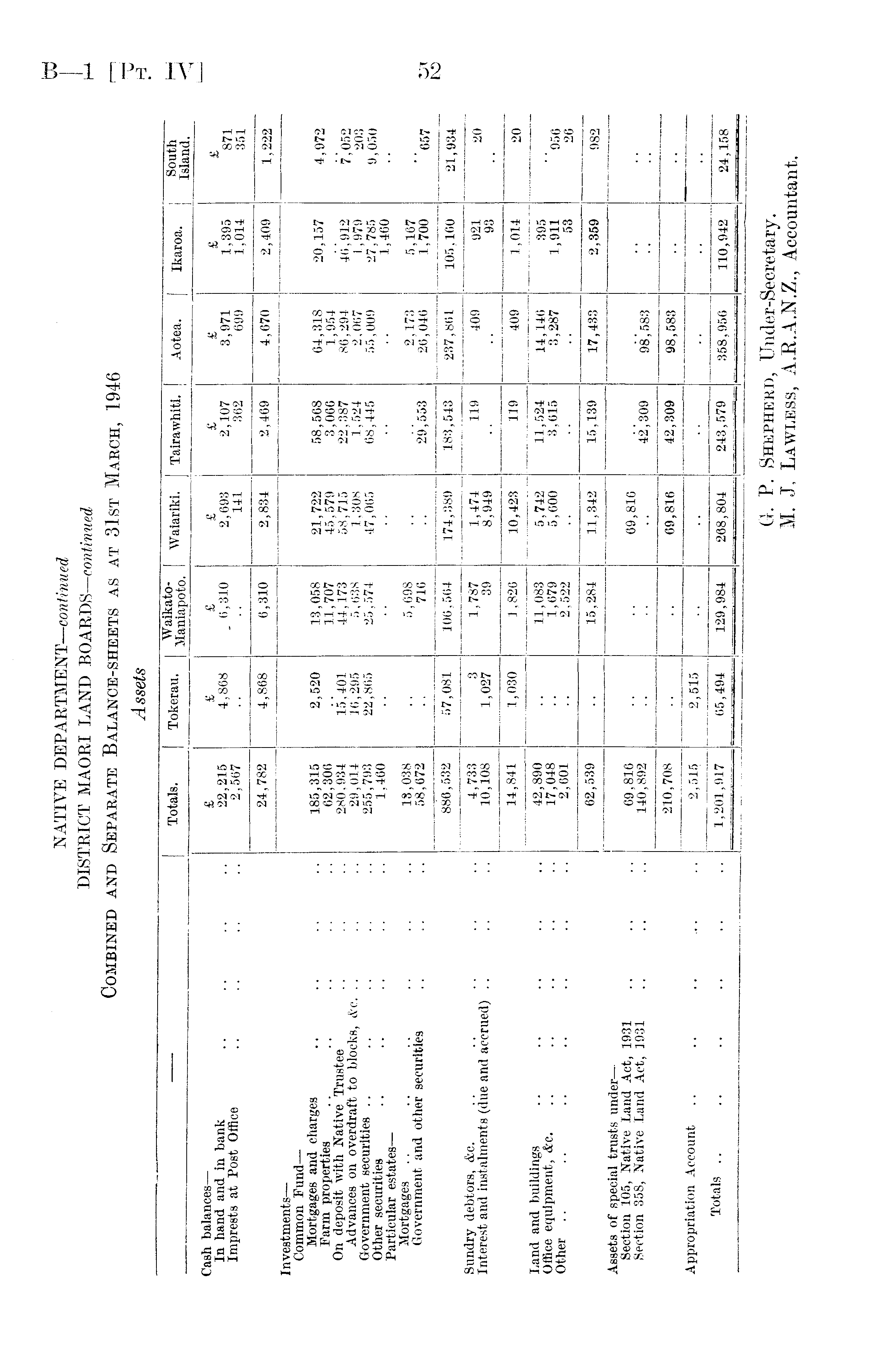 NATIVE DEPARTMENT— continued DISTRICT MAORI LAND BOARDS— continued Combined and Separate Balance-sheets as at 31st March, 1946 Assets