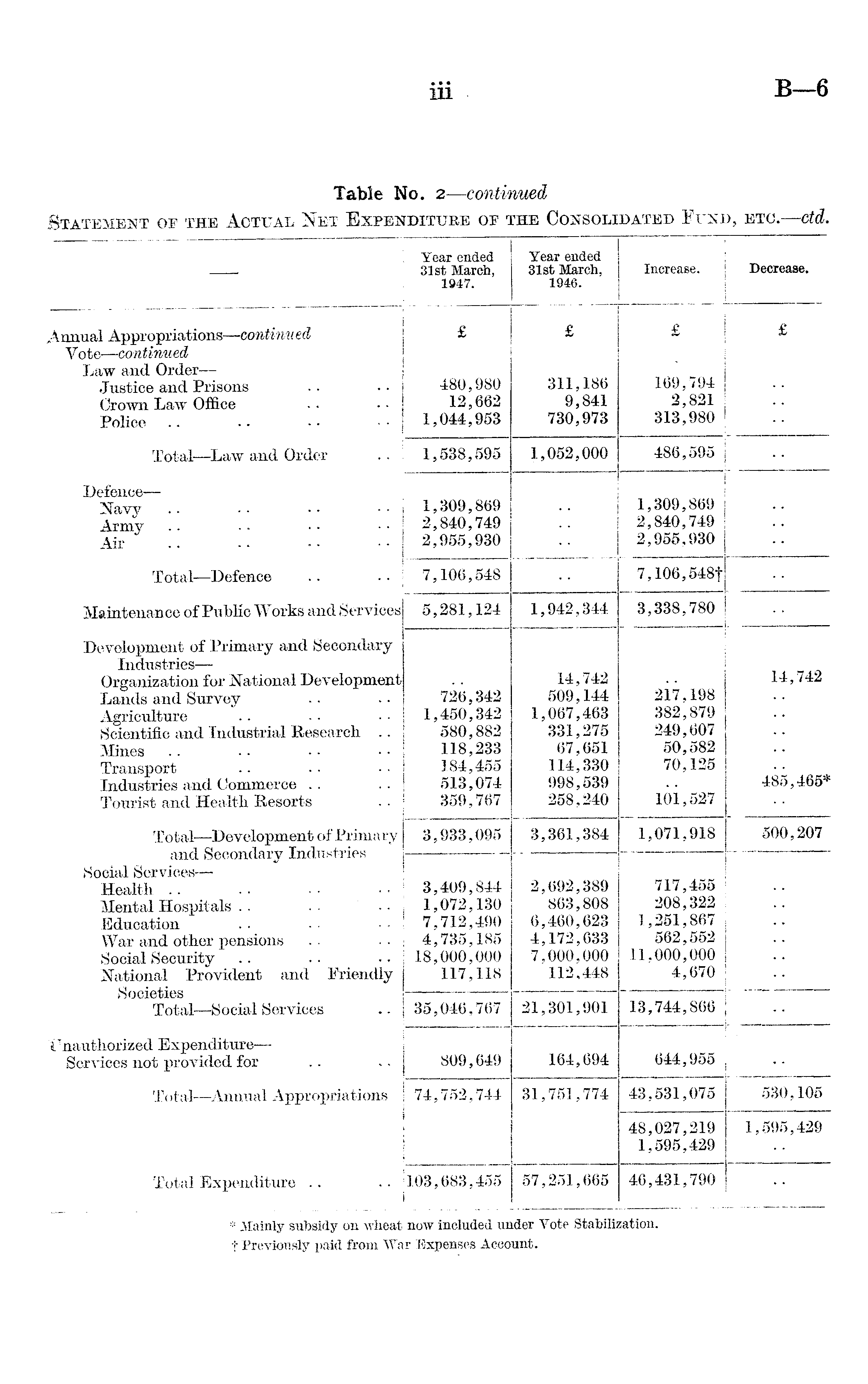 Table No. 2 —continued Statement of the Actual Net Expenditure of the Consolidated Fund, etc. —ctd.