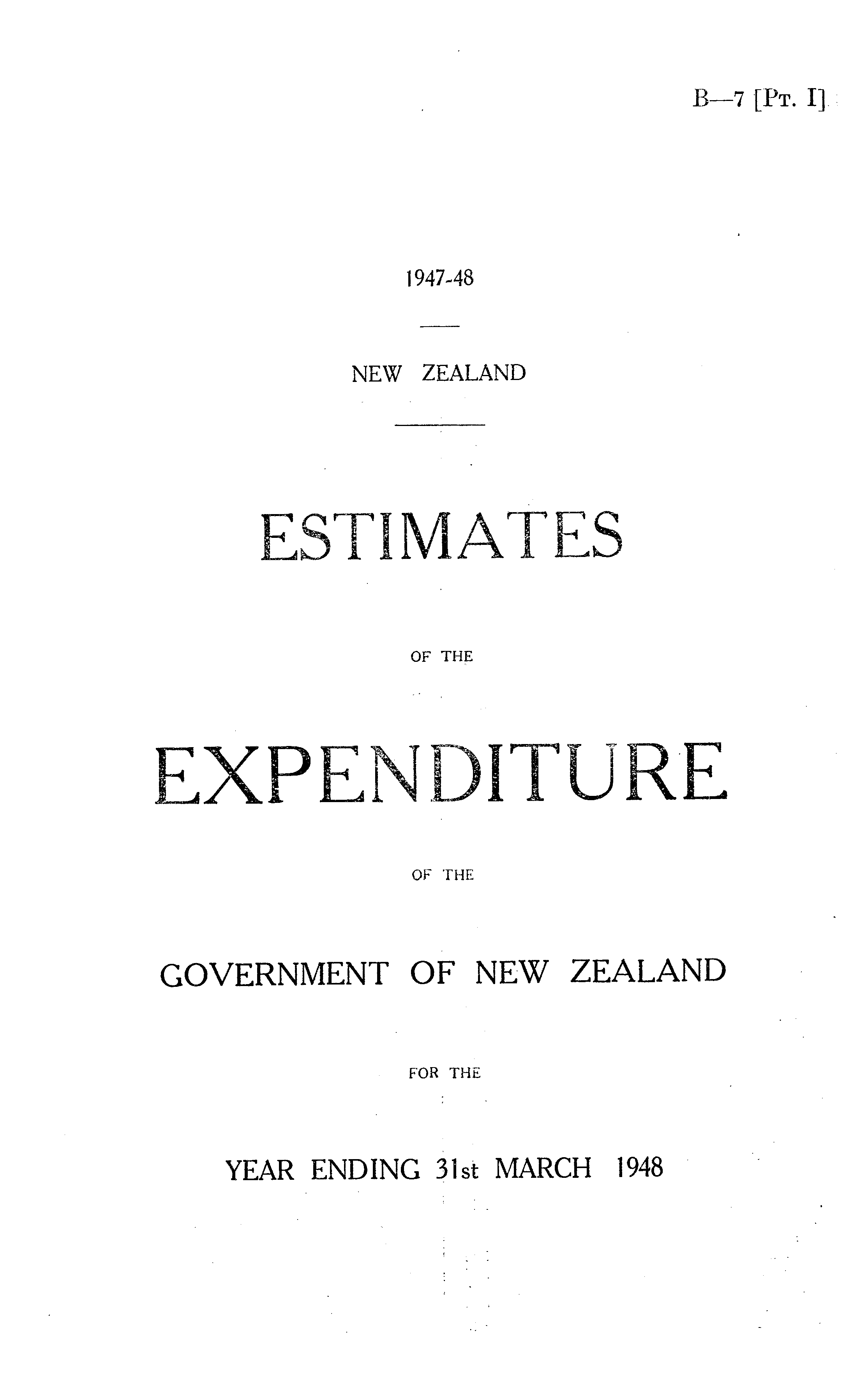 ESTIMATES OF THE EXPENDITURE OF THE GOVERNMENT OF NEW ZEALAND FOR THE YEAR ENDING 31st MARCH 1948
