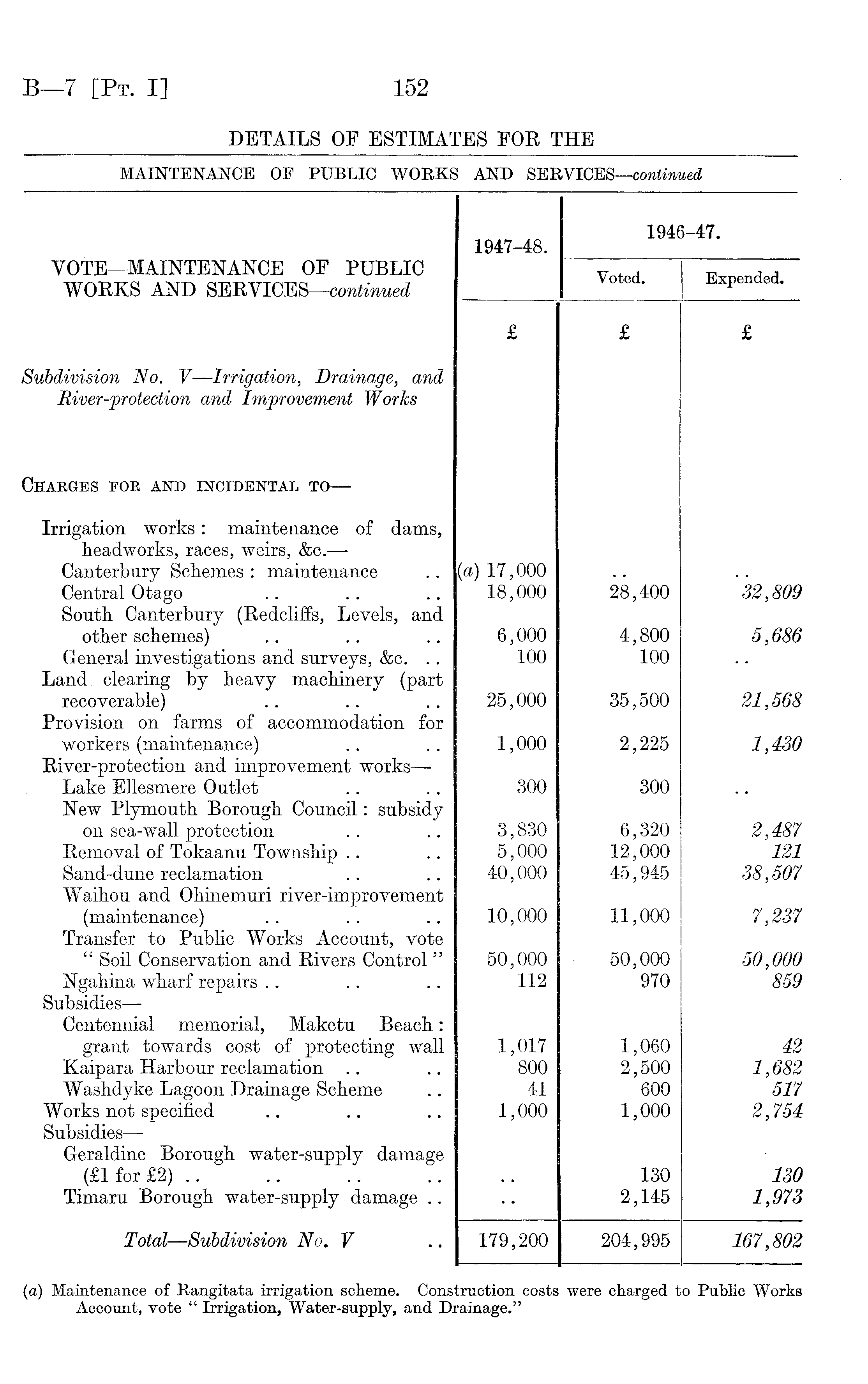 (a) Maintenance of Rangitata irrigation scheme. Construction costs were charged to Public Works Account, vote " irrigation, Water-supply, and Drainage."