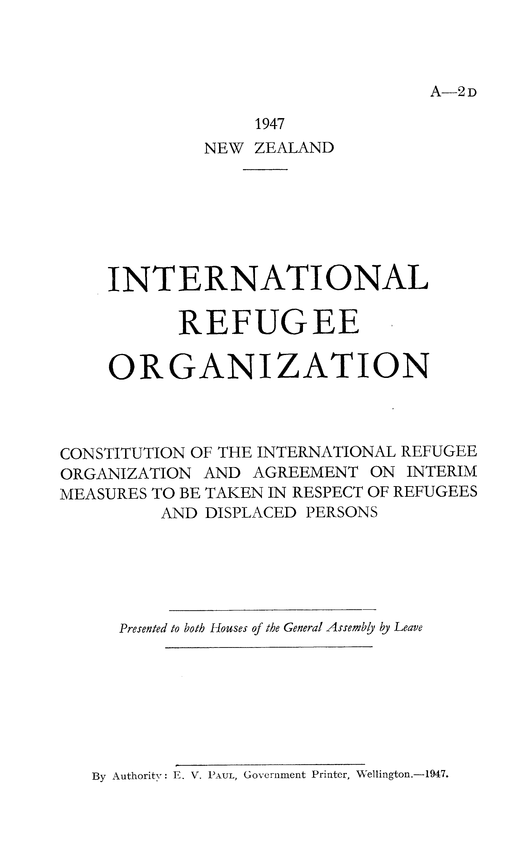 INTERNATIONAL REFUGEE ORGANIZATION CONSTITUTION OF THE INTERNATIONAL REFUGEE ORGANIZATION AND AGREEMENT ON INTERIM MEASURES TO BE TAKEN IN RESPECT OF REFUGEES AND DISPLACED PERSONS