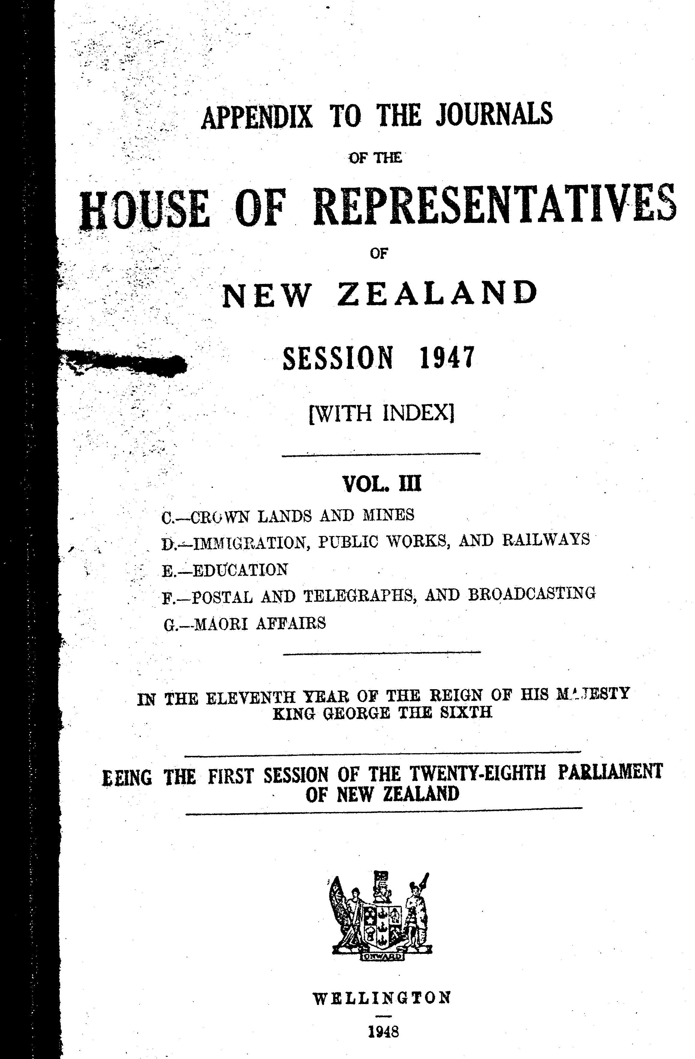 APPENDIX TO THE JOURNALS OF THE HOUSE OF REPRESENTATIVES OF NEW ZEALAND SESSION 1947 [WITH INDEX]