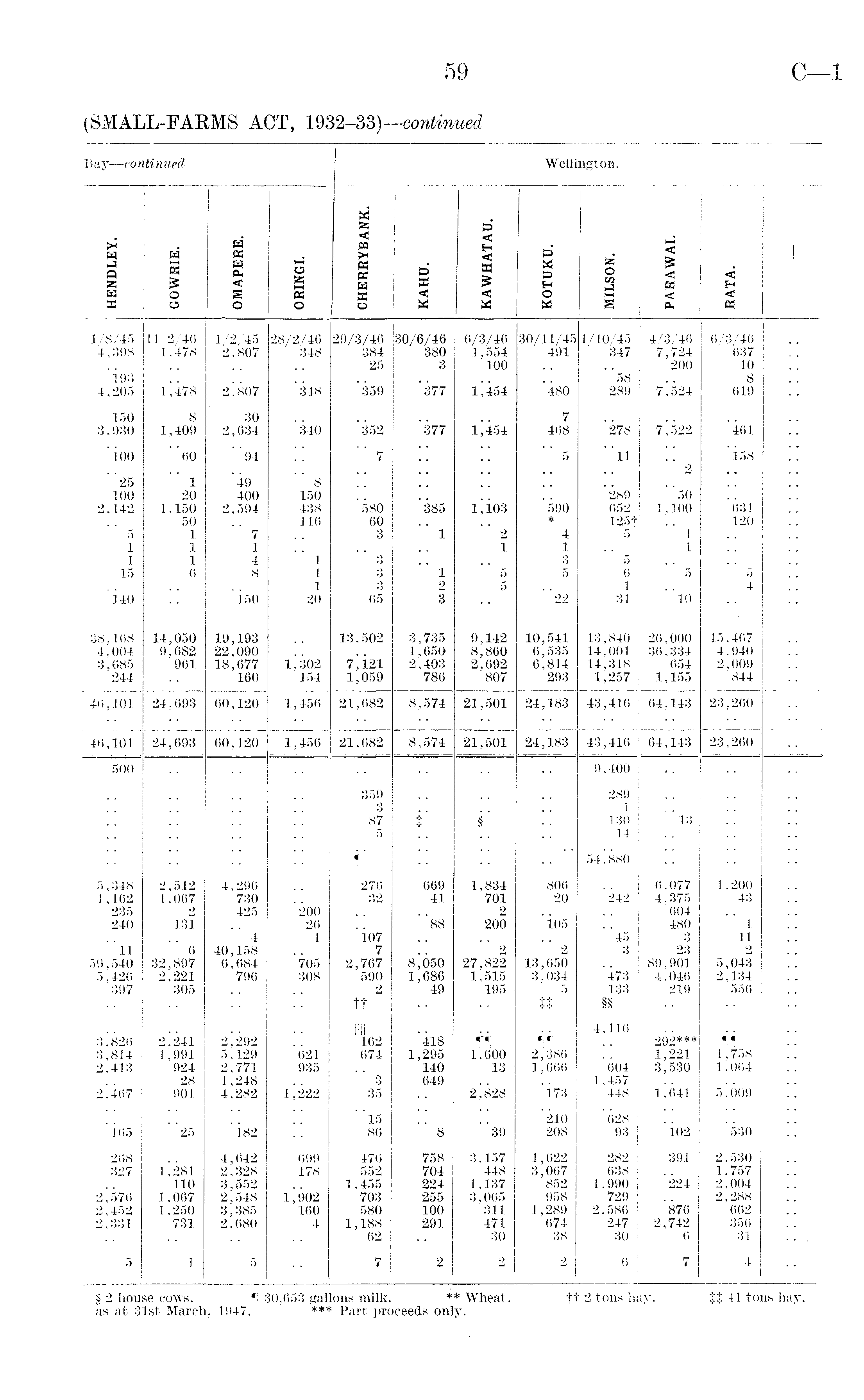 Bay—continued Wellington. HENDLEY. w 2 £ o o « « w CM < S o 3 2 S 0 X < n > K K w X 0 S SC < * P < H < X £ < X e> « 0 H O W X 0 09 ►J s < ! S < « <C BU < < « 1 1/8/45 4,398 i93 4,205 11/2/46 1,478 1^478 1/2/45 2,807 2 j 807 28/2/46 348 '348 29/3/46 384 25 '359 30/6/46 380 3 '377 6/3/46 1,554 100 1^454 30/11/45 491 '480 1/10/45 347 "58 289 4/3/46 7,724 200 7 524 6/3/46 637 10 8 619 150 3,930 8 1,409 30 2,634 '340 '352 '377 1^454 7 468 '278 7 j 522 461 ioo ' 60 ' '94 7 5 "ll 0 i58 ' 25 100 2,142 1 1 15 "i40 1 20 1,150 50 1 1 1 6 49 400 2,594 7 1 4 8 "iso 8 150 438 116 1 1 1 20 5S0 60 3 3 3 3 65 '385 1 1 2 3 ljio3 2 1 5 5 590 4 1 3 5 ' 22 *289 652 125t 5 5 6 1 31 ' "50 1,100 1 1 5 "lO 631 120 ( 4 38,168 4,004 3,685 244 14,050 9,682 961 19,193 22,090 18,677 160 1 j 302 154 13,502 7*,i21 1,059 3,735 1,650 2,403 786 9,142 8,860 2,692 807 10,541 6,535 6,814 293 13,840 14,001 14,318 1,257 26,000 36,334 654 1,155 15,467 4,940 2,009 844 46,101 24,693 60,120 1,456 21,682 8,574 21,501 24,183 43,416 64,143 23,260 46,101 24,693 60,120 1,456 21,682 8,574 21,501 24,183 43,416 64,143 23,260 500 9,400 359 289 1 130 14 87 5 i ' ' 13 if 54 j 880 5,348 1,162 235 240 ' 11 59,540 5,426 397 2,512 1.067 2 131 6 32,897 2,221 305 4,296 730 425 4 40,158 6,684 796 200 26 1 705 308 276 32 io7 7 2,767 590 2 tt 669 41 ' '88 1 '' 1,686 49 1,834 701 2 200 2 27,822 1,515 195 806 20 'ios 2 13,650 3,034 5 tt 242 ' 45 3 473 133 §§ 6,077 4,375 604 480 23 89,901 4,046 219 1,200 43 1 11 2 5,043 2,134 556 3 826 3,814 2,413 2^467 1,991 924 28 901 5,129 2,771 1,248 4,282 621 935 1^222 llll 162 674 3 35 '418 1,295 140 649 iif 1,600 13 2^828 i-if 2,386 1,666 i73 4,116 604 1,457 448 292*** 1,221 3,530 M41 iir 1,758 1,064 5 j 009 i65 ' 25 i82 ' 15 86 8 ' 39 '210 208 628 93 "io2 530 268 327 2 j 576 2,452 2,331 1 j 281 110 1,067 1,250 731 4,642 2,328 3,552 2,548 3,385 2,680 699 178 160 4 476 552 1,455 703 580 1,188 62 758 704 224 255 100 291 3,157 448 1,137 3,065 311 471 30 1,622 3,067 852 958 1,289 674 38 282 638 1,990 729 2,586 247 30 391 '224 '876 2,742 6 2,530 1,757 2,004 ■ 2,288 662 356 31 5 1 5 7 2 2 2 6 7 4 § 2 house cows, as at 31st March If 30,653 gallons milk. ** Wheat. 1, 1947. *** Part proceeds only. tt 2 tons hay. tt 41 tons hay.
